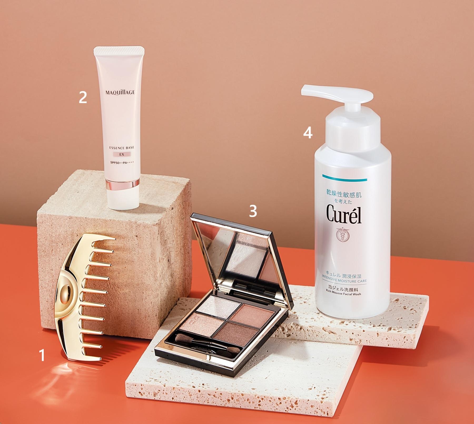 “絶対使えるベージュアイパレ”として、雑誌やSNSで話題を呼んでいるカラー。どんな肌色にも溶け込むベージュブラウンに、微細パールを配合したクリアなコートカラー(左上)をセット。「肌なじみの良さとキレイなパール感で、大人っぽい上品な目元に。どんなシーンにも合いそう」(モデル・花山瑞貴さん)。¥7,700 9/19発売(SUQQU TEL. 0120-988-761)