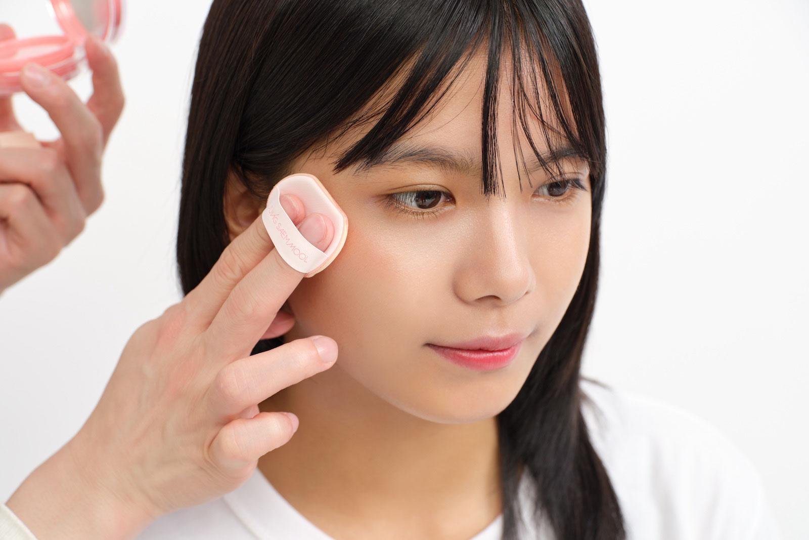 - ピンク系のクリーム下地でベースを整えたら、コンシーラーで目元や小鼻、口角周りのくすみが気になるところをポイントでカバー。