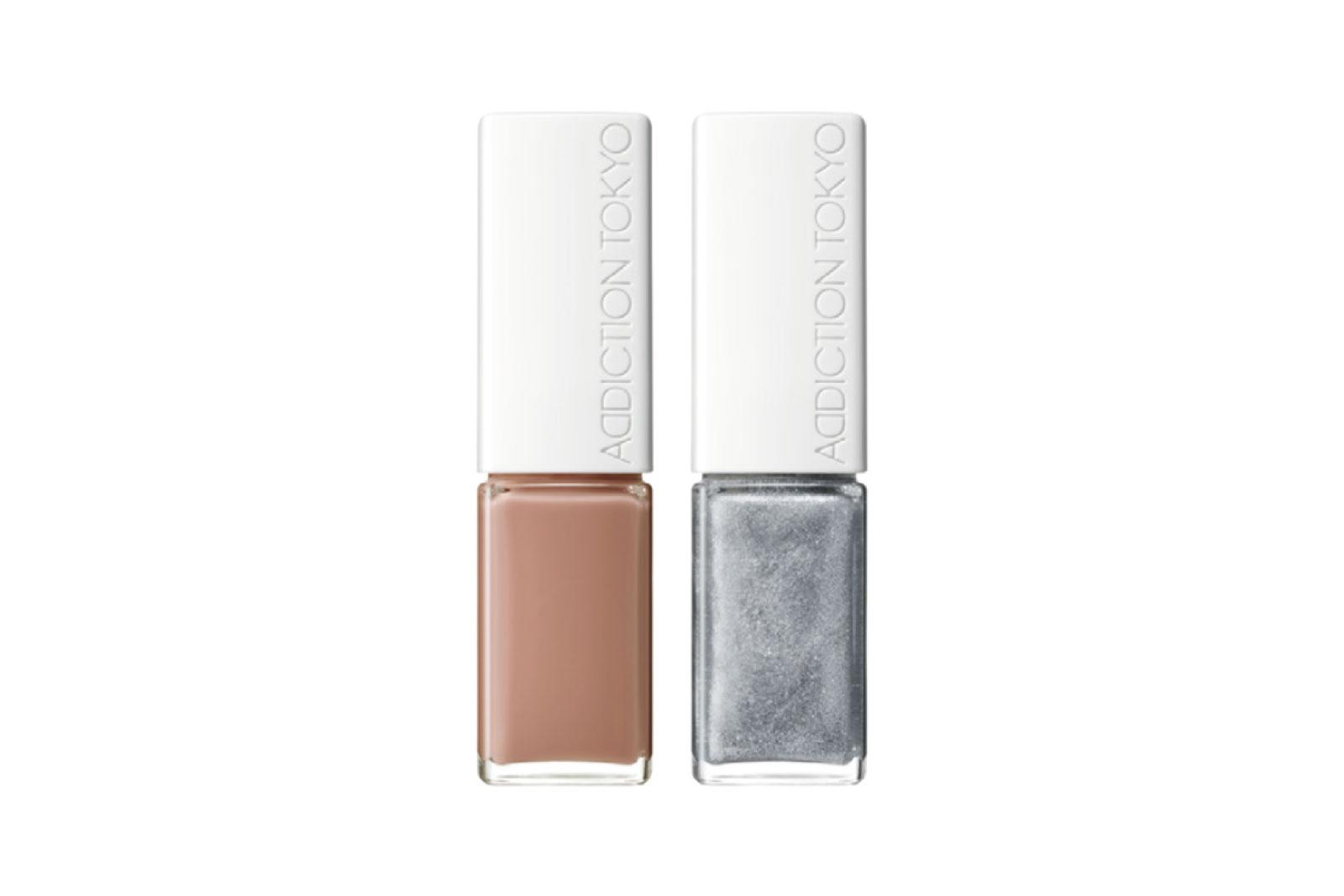洗練されたツヤめきと、繊細で新感覚なニュアンスが叶うカラーが登場。大小2種のヒアルロン酸配合で、長時間潤う。「ラメを重ねるなんて新しい。洒落感が一気に上がります。シックやモードなコーディネートの時に使いたいテクニック」(谷さん)。 各¥4,070(ADDICTION BEAUTY TEL. 0120-586-683)