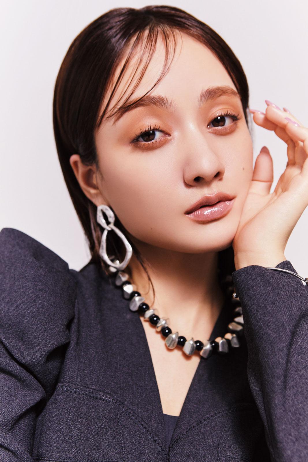 今季のリップトレンドについて「色のバリエが豊富で、光沢感やツヤがあるものが多い印象です」と話すのはメイクを担当したAYAさん。