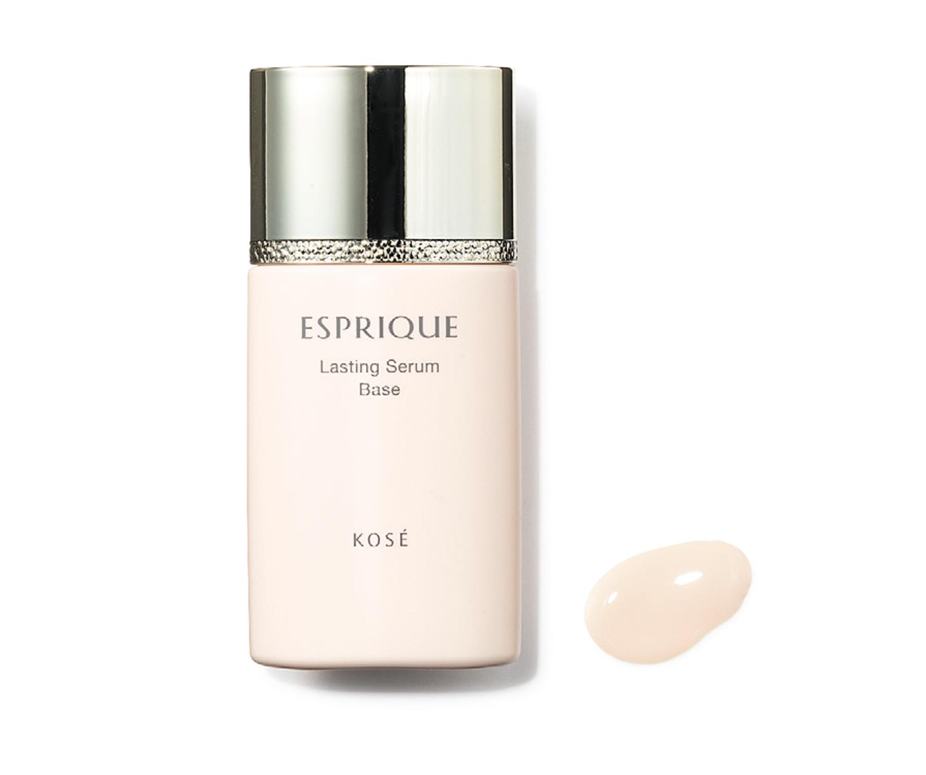 ベースメイクの土台となる下地は、保湿成分をたっぷり含んだ美容液タッチのものを。肌全体の潤いを高めておけば、この後にのせるコントロールカラーやファンデーションの密着度が高まり、時間が経っても崩れにくい。