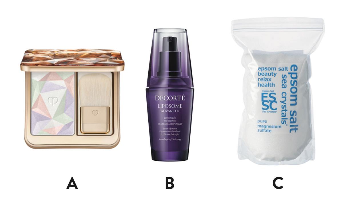 C 「ほぼ毎日使用。これを入れたお湯に10~15分、たっぷり汗をかくまで」。エプソムソルト シークリスタルス入浴剤 オリジナル2.2㎏ ¥1,462(EPSOM&CO TEL. 0120-816-026)