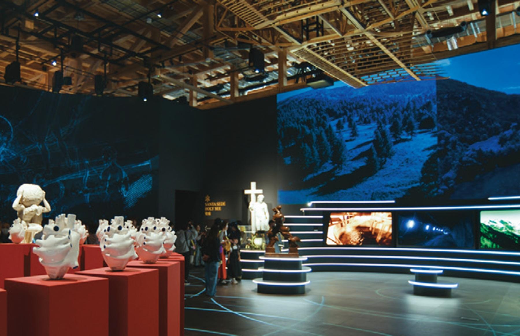 イタリアの伝統と最新技術を融合させた展示空間。円形に配置された30個の白い液体セラミックのハートで構成されたヤゴの「循環器系」や、ドメニコ・ティントレットの「伊東マンショの肖像」などもこちらに飾られる。