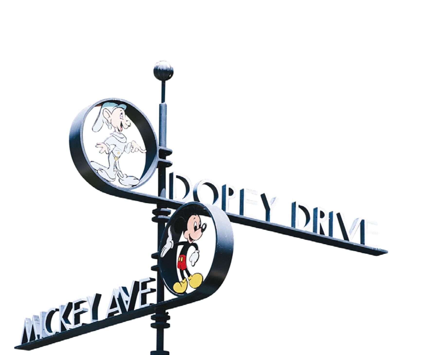 『白雪姫』(1937年)の収益で建てられた本スタジオを象徴する、7人のこびとが支える本社ビル「チーム・ディズニー・ビルディング」。正面にはウォルトとミッキーの銅像を中心に広がる「ディズニー・レジェンド・プラザ」が。俳優や製作陣などディズニーの歴史を支えたあらゆるレジェンドたちの手形やサインが並んでいる。