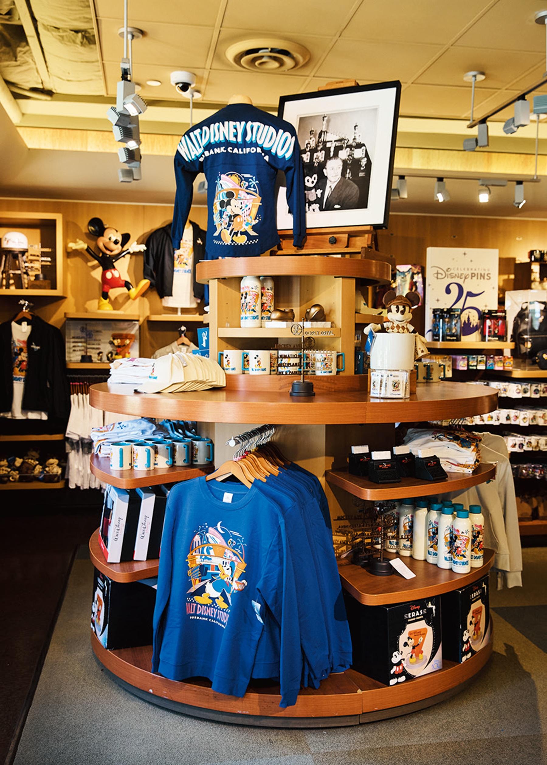お土産を買えるショップもあるんです。日本や米国のパーク内で販売される商品のほか、「The Walt Disney Studios」と書かれた限定グッズのコーナーも。奥には従業員向けショップも併設されている(従業員以外も購入可)。欲しくなる商品ばかりで、時間もお金も足りない…!
