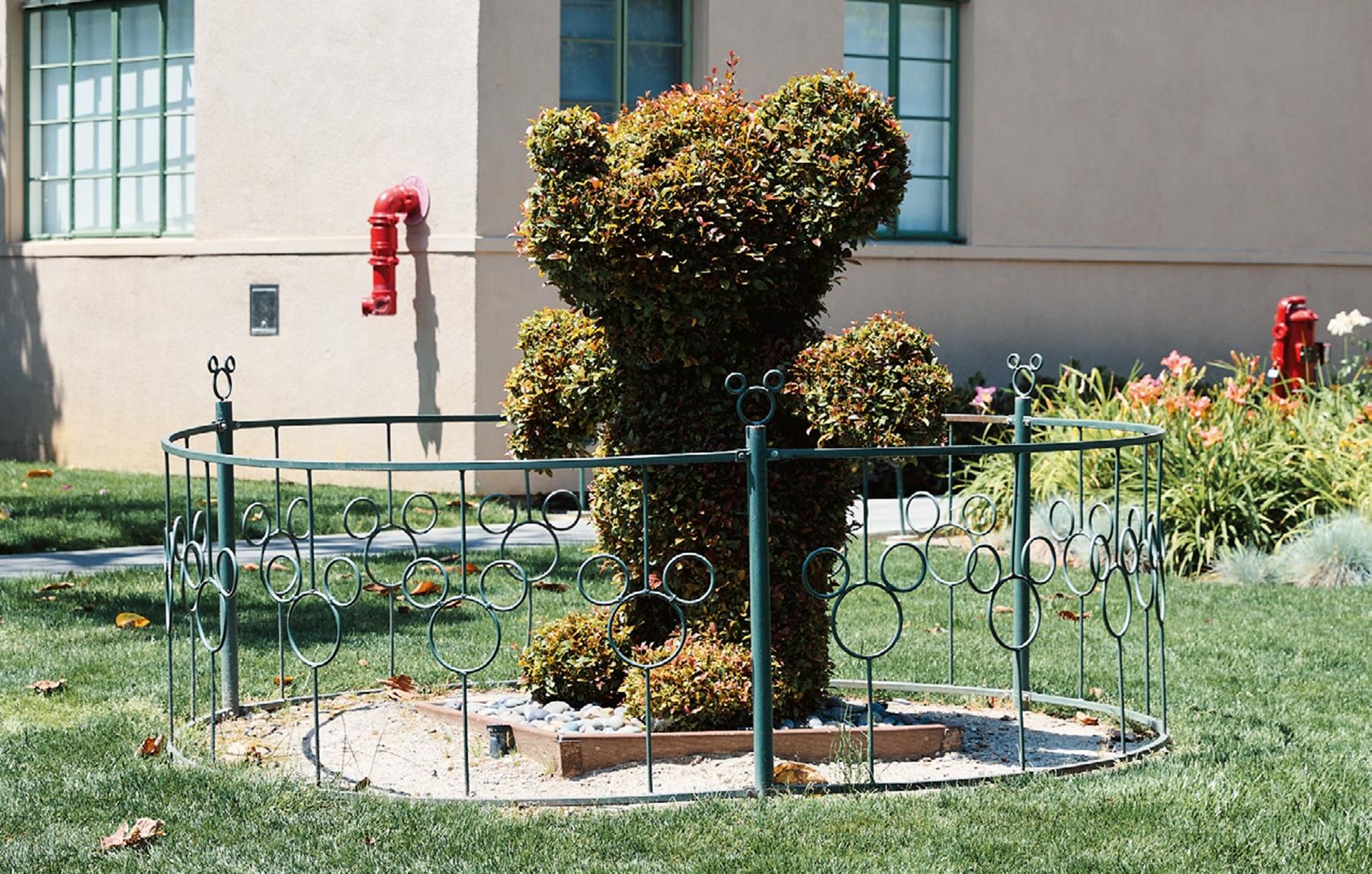 美しく刈り込まれたトピアリーにそれを囲う柵、自転車置き場にガソリンスタンド…。スタジオ内には、至る所に隠れミッキーが。従業員用の小さな看板など、ここにも!? という場所にも素敵なデザインで潜むミッキー。見つける度にキュンとしました!