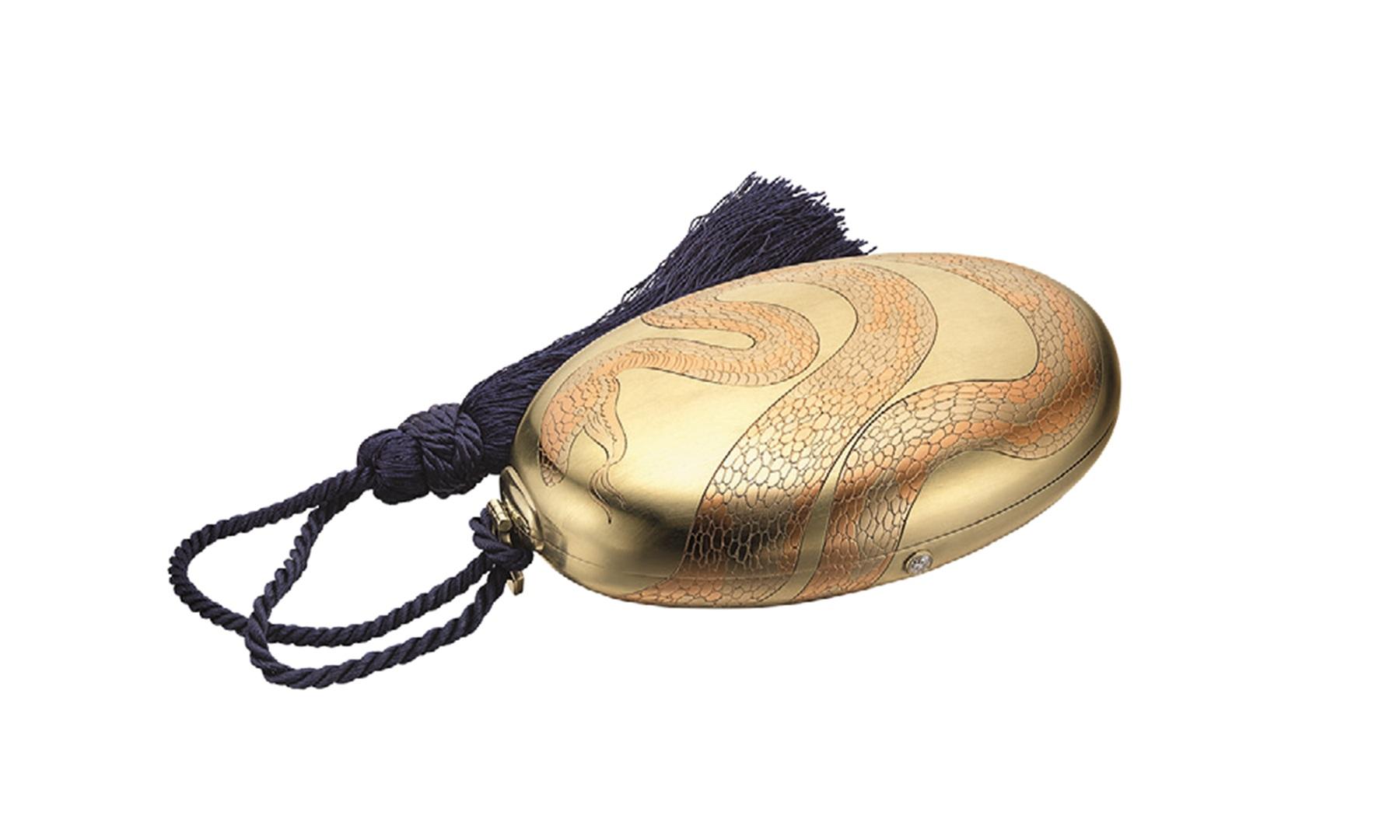 《「セルペンティ」イブニングバッグ》ホワイト、レッド、「シーウォーター」グリーンゴールド、シルクコード、ダイヤモンド 1978年頃 ブルガリ・ヘリテージ・コレクション