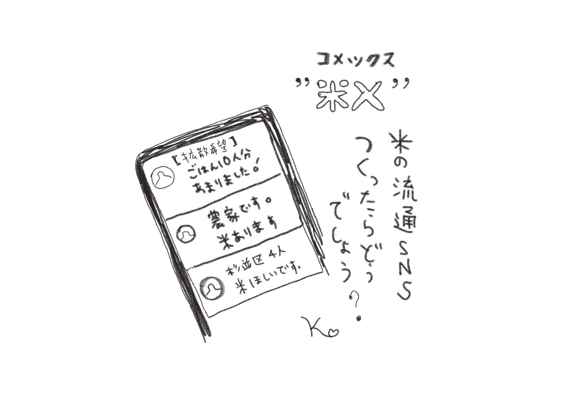 農家にも実は結構お米が余ってるって聞くし、お米の交通整理がうまくできていないようで、なんだか歯痒いです。こうなったら、食品ロスをなくすためにも、お米が欲しい人とお米が余っている人が直接やり取りできるお米SNSを作るのはどうでしょう。