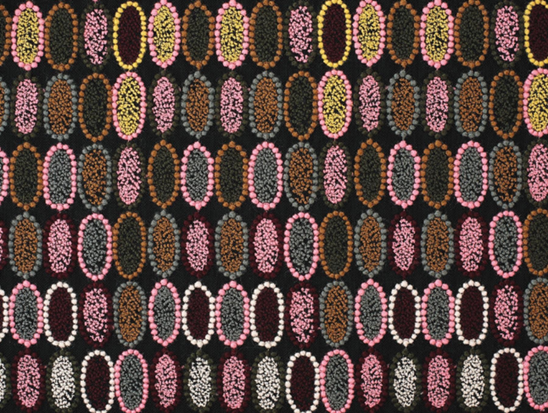 〈“tarte”2007-08→a/w〉 パティスリーに並ぶ色とりどりのタルトをイメージ。ドットの刺繍で縁取りを、内側はステッチで表現