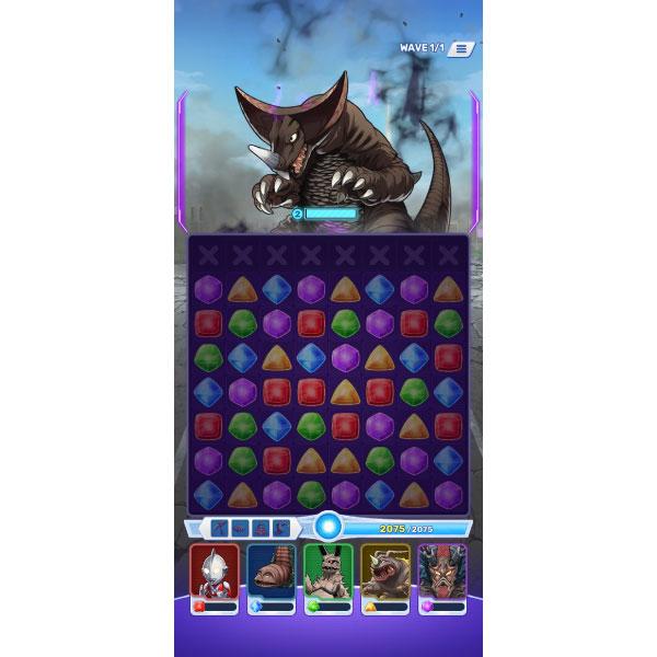 歴代のウルトラヒーローや怪獣など多数登場!『ウルトラマン パズルシュワッチ!!』/防衛軍「MGT」の一員となり、ウルトラヒーローたちでチームを編成。同じ色のピースを3つ以上揃えると攻撃が発動し、多彩な必殺技の演出も。「ガチャを引けば引くほど、高レアリティのキャラをゲットできます」(編集S)ⒸTPC / ⒸMF / ⒸStudioZ