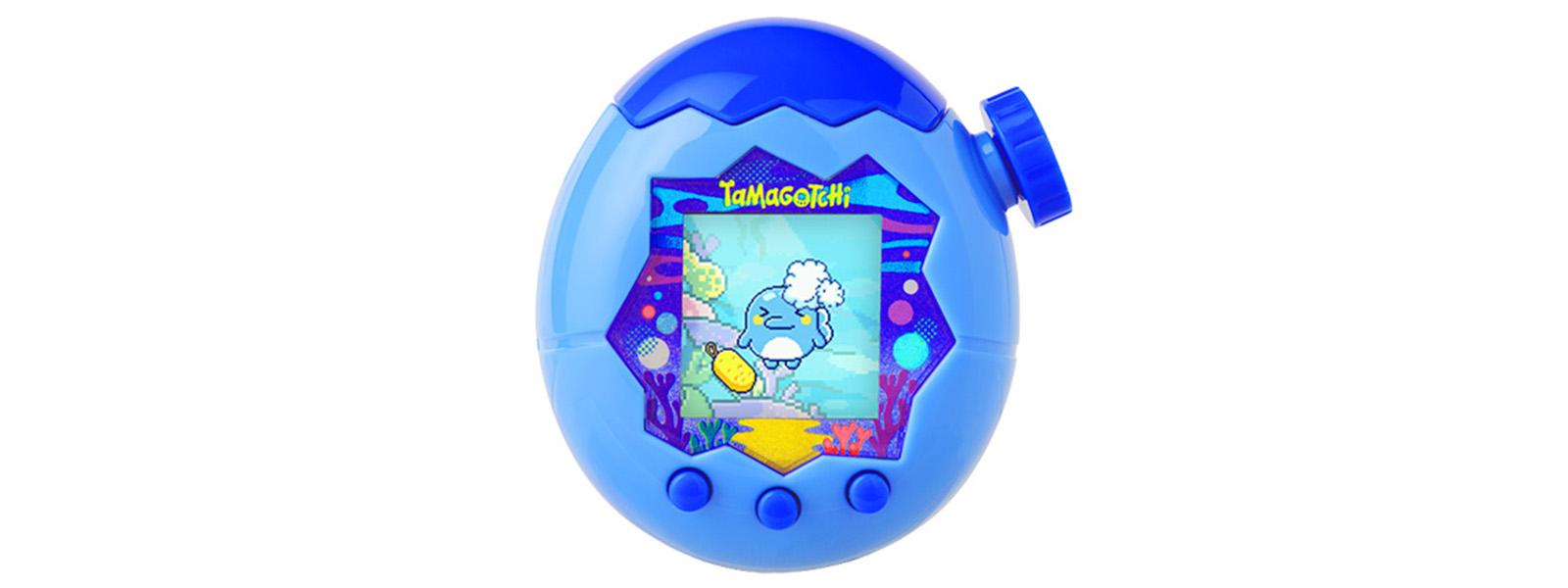 5万種以上から多様に成長させられる最新機種。みず、りく、そら、3つのフィールドで遊べる。「ズームダイヤルを回して惑星全体からたまごっちの体の中までお世話できます。アナログなツーしんも楽しいです」