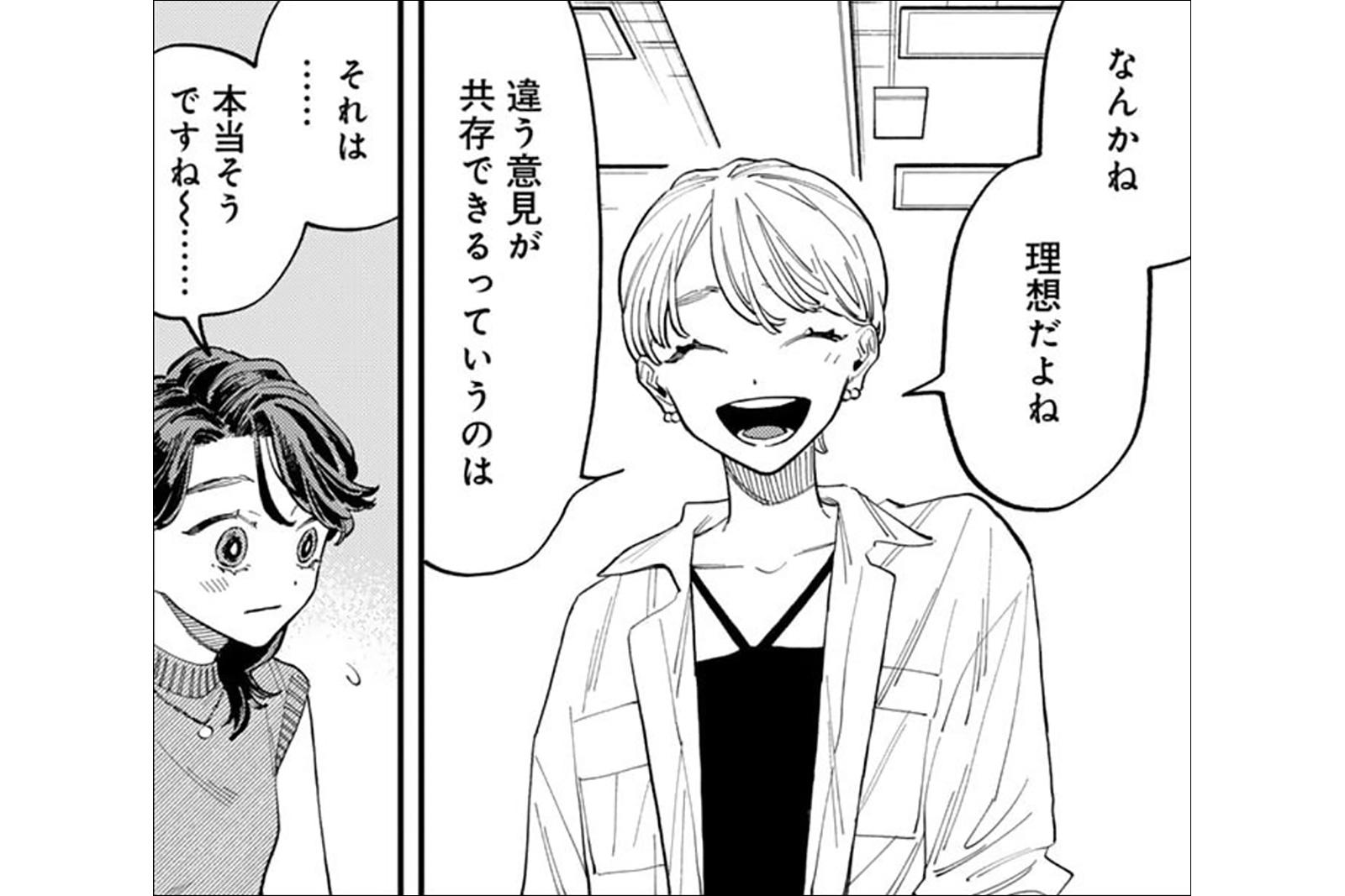 マンガとかに男女キャラが出てくると、9割方“いい感じ”になるじゃないですか。別に逆張りをしたいわけではないんですが、それが当たり前なんだったら、「いい感じになっちゃわない、っていうのはダメですか?」という気持ちは若干はありますね(笑)。読者の方の感想を読んでいると、恋に発展してほしい、このままでいてほしい、半々という感じです。でも、私自身こんなに連載が長く続くのが初めてで、自分でも彼らの気持ちがどう動くのかまだわからないですね。