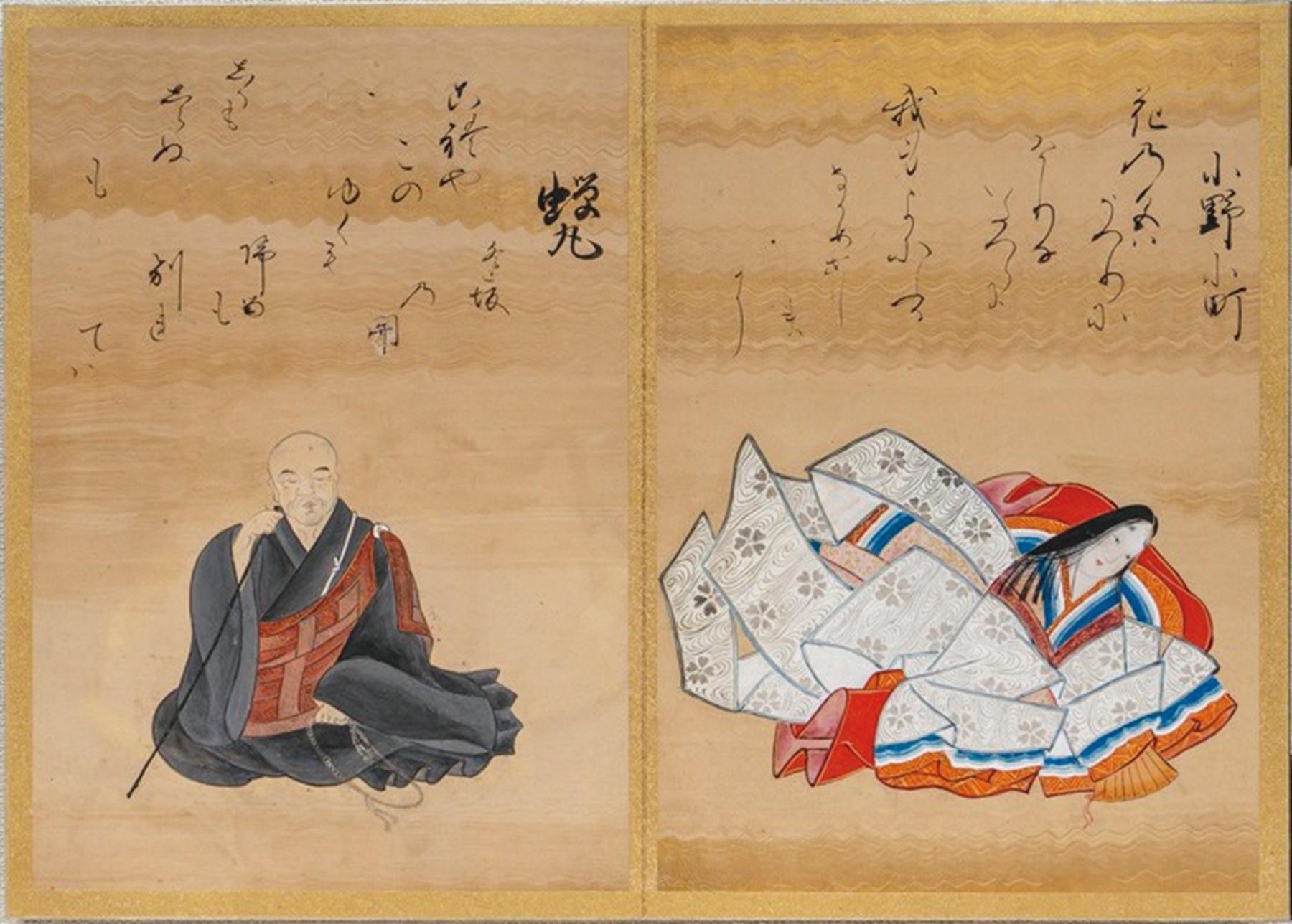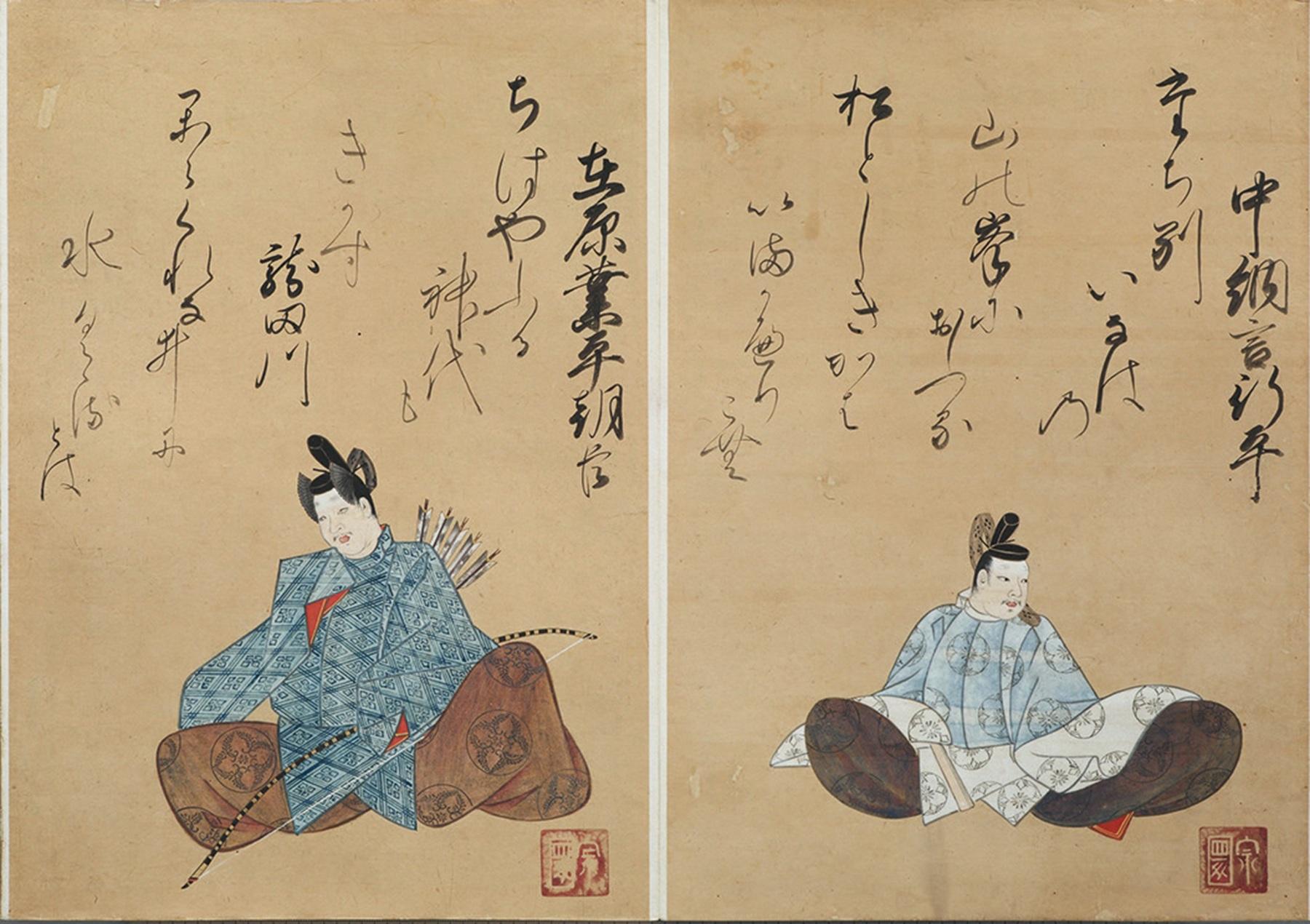 すでに平安時代の終わり頃には優れた歌人が神格化され、絵に描くことが行われていたという。人物像と代表作の歌を一画面に描くのが定番のスタイル。