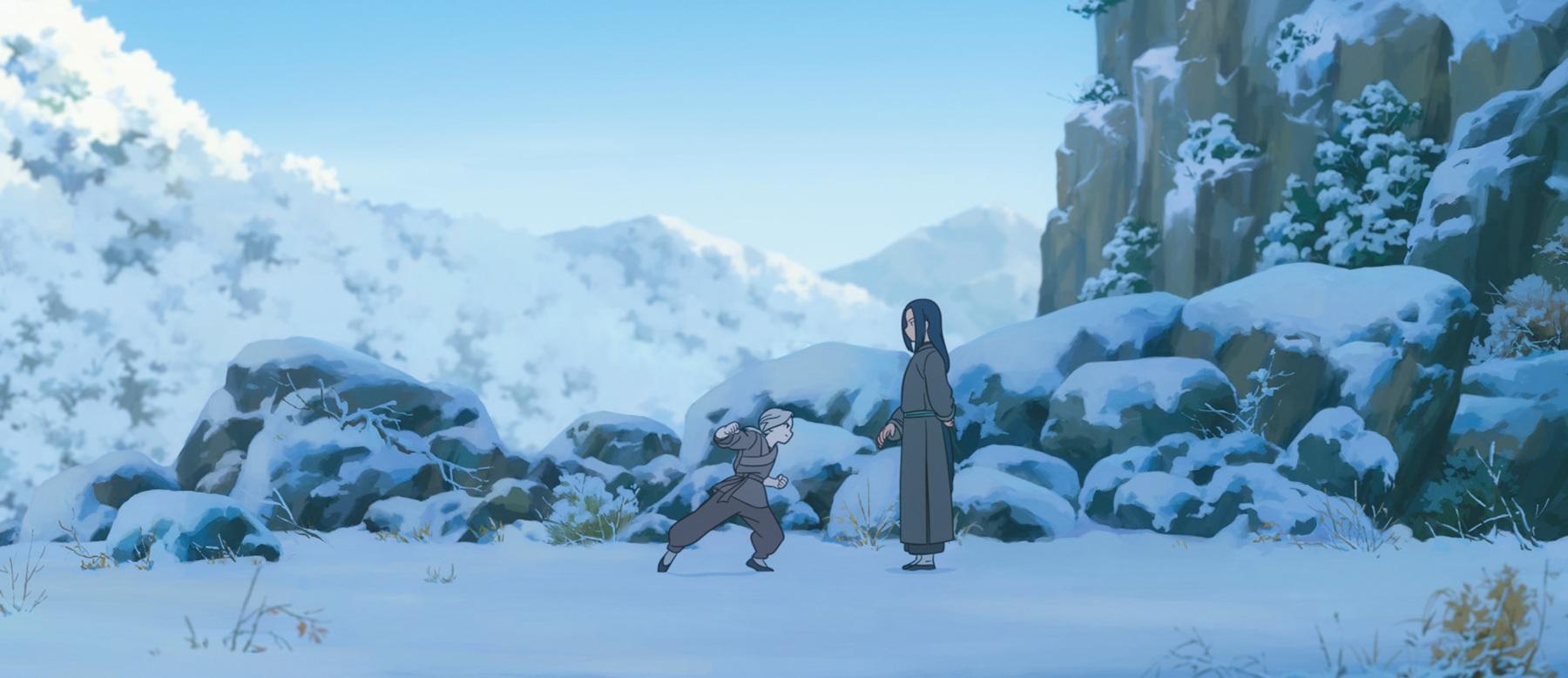 ムゲンに屈託のない笑顔を向けるシャオヘイと、シャオヘイの身を案じてあえて厳しい修行を課しつつ精一杯の愛情を向けるムゲン。ふたりの心温まる関係性にほっこり。
