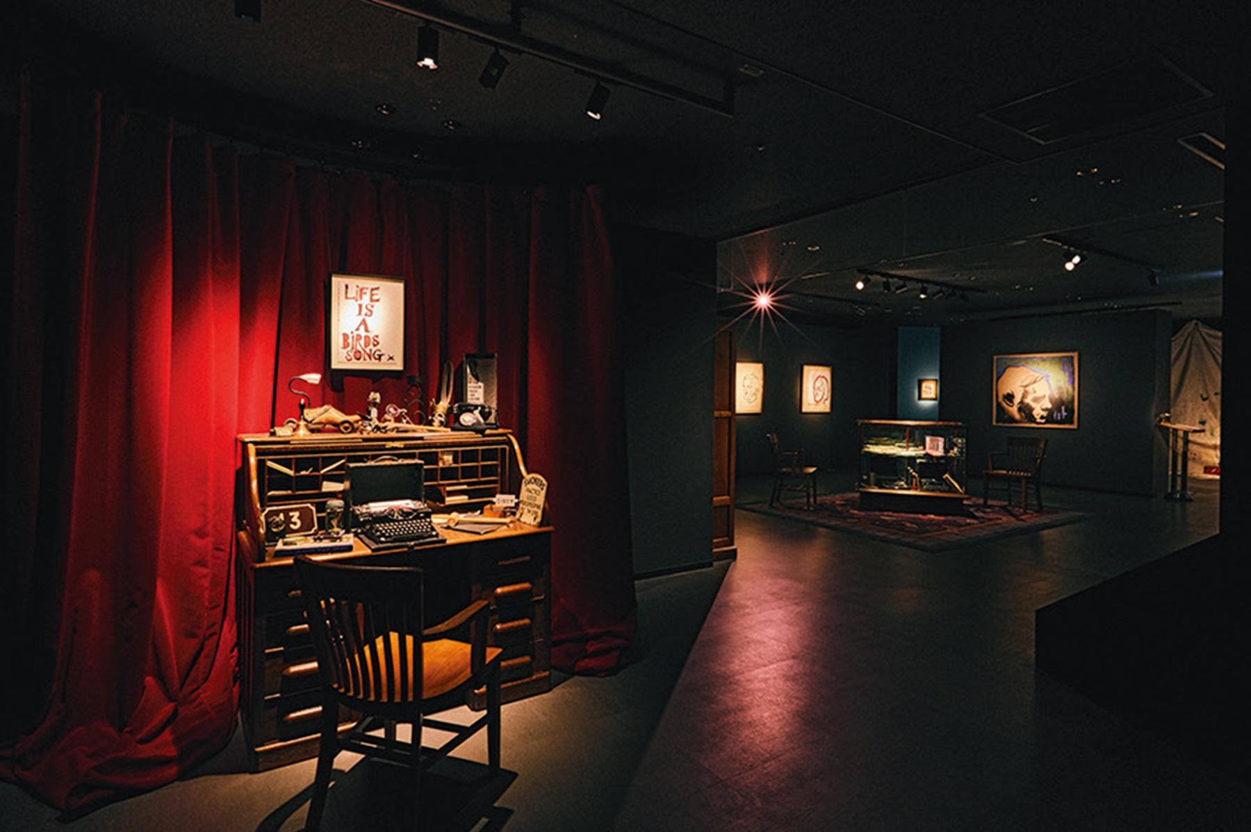本展ではデップが30年以上前から描き溜めた100点以上の作品に加え、私物の家具や画材など貴重なアイテムが初めて国外に持ち出される。会場はこれらに合わせて、オリジナルで空間を設えている。
