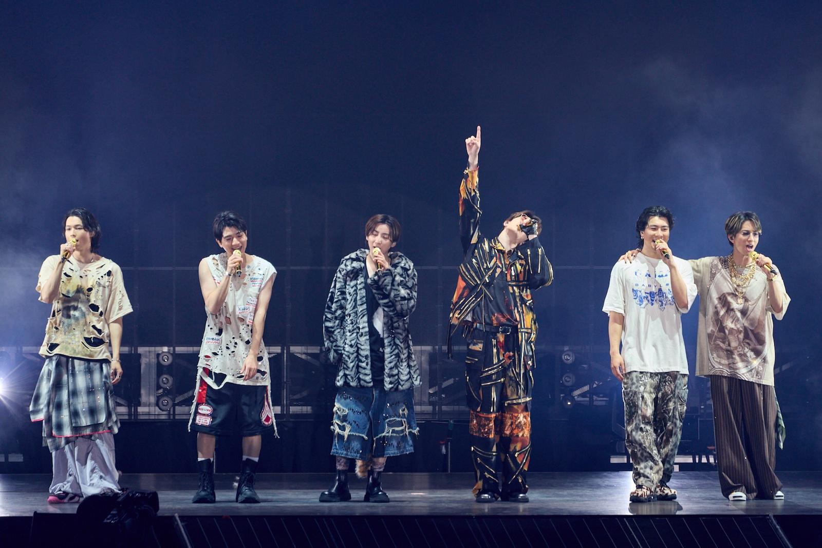 ちなみに横浜アリーナの公演を終えた後に⾏われたインスタライブでは、「スタジアムで『⼀秒』を歌ったら、エモい!」などと盛り上がっていた6⼈。⼣暮れにふさわしい曲をいいタイミングでやるためにMCで時間調整をしたい、1時間でもMCができると話していた。野外ならではの「外、気持ちいいね、⾵来たねぇー、今」など、MCでのファンとのやりとりまで予想。実現するかは不明だが、キッチンカーで“森本おにぎり⾷堂”をやりたいなどのアイデアも次々と⾶び出していた。彼らの鋭いセンスとユーモアたっぷりな発想でどんなスタジアムライブとなるのか期待が膨らむばかりだ。