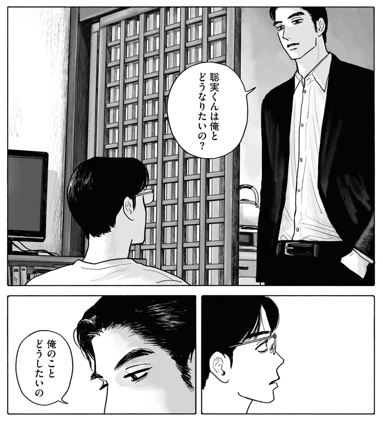 「担当さん方との打ち合わせでは、ストーリーの展開よりも『聡実ならこのときどうするか』『ここで狂児は何を考えてるのか』といった彼らの心情について重点的に話し合うことのほうが多かったです。それでもキャラクターと私は違う人間なので、『そうかもしれない』と推し量ることしかできない場合もあり、わからないまま描くこともありました。聡実の考えすぎる性格は、おそらく私も一緒に考えすぎているせい。狂児が掴みどころがないのは、私自身が掴めてないからかもしれません」