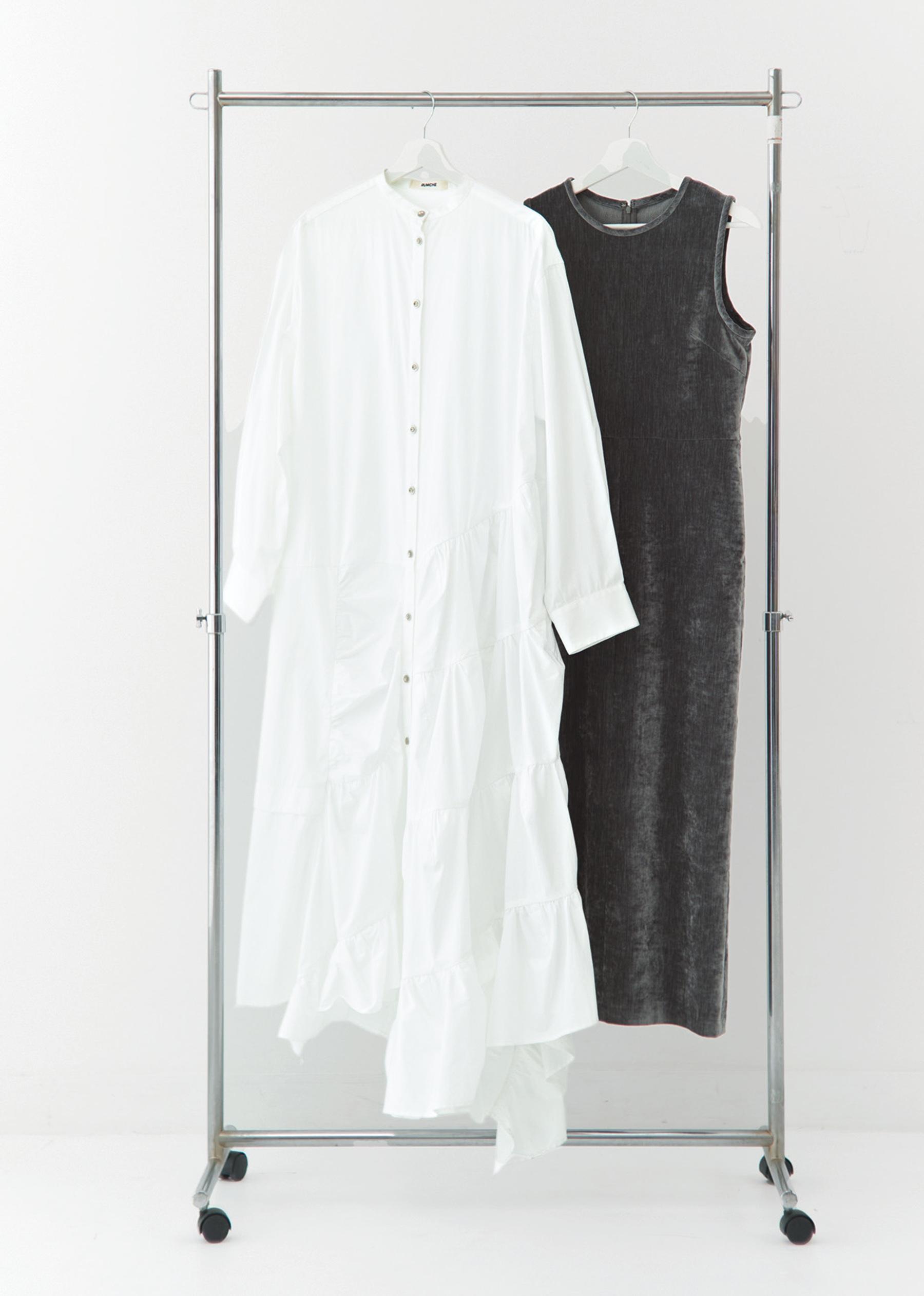 左・ドレス¥71,500(ラム・シェ) 右・ドレス¥16,940(ビューティー&ユース/ビューティー&ユース ユナイテッドアローズ 丸の内店 TEL. 03-6212-1500)