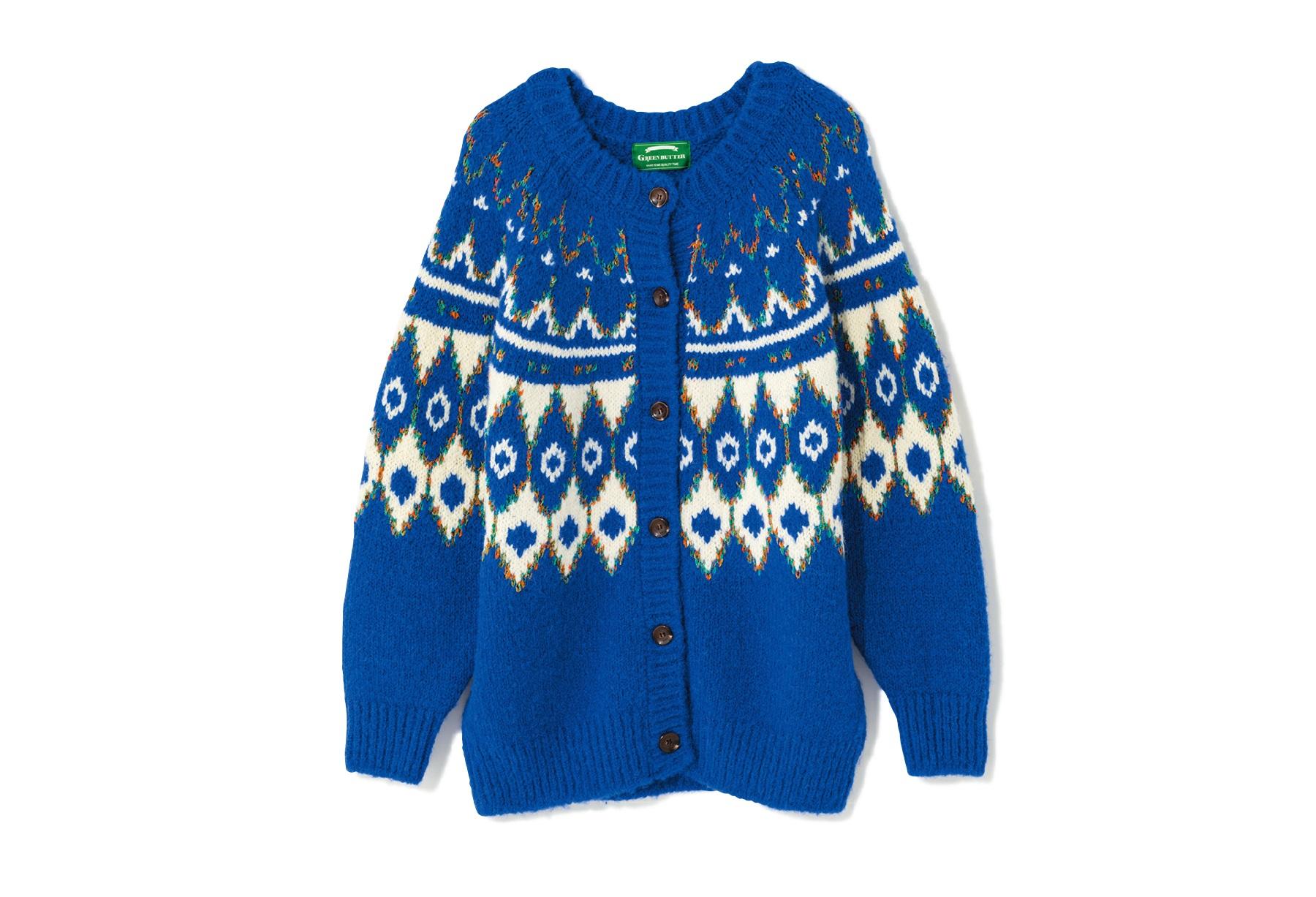 アルパカやウールを混紡したノルディックカーディガン。ビビッドな発色で暗くなりがちな秋冬の装いを刷新。ベージュもあり。