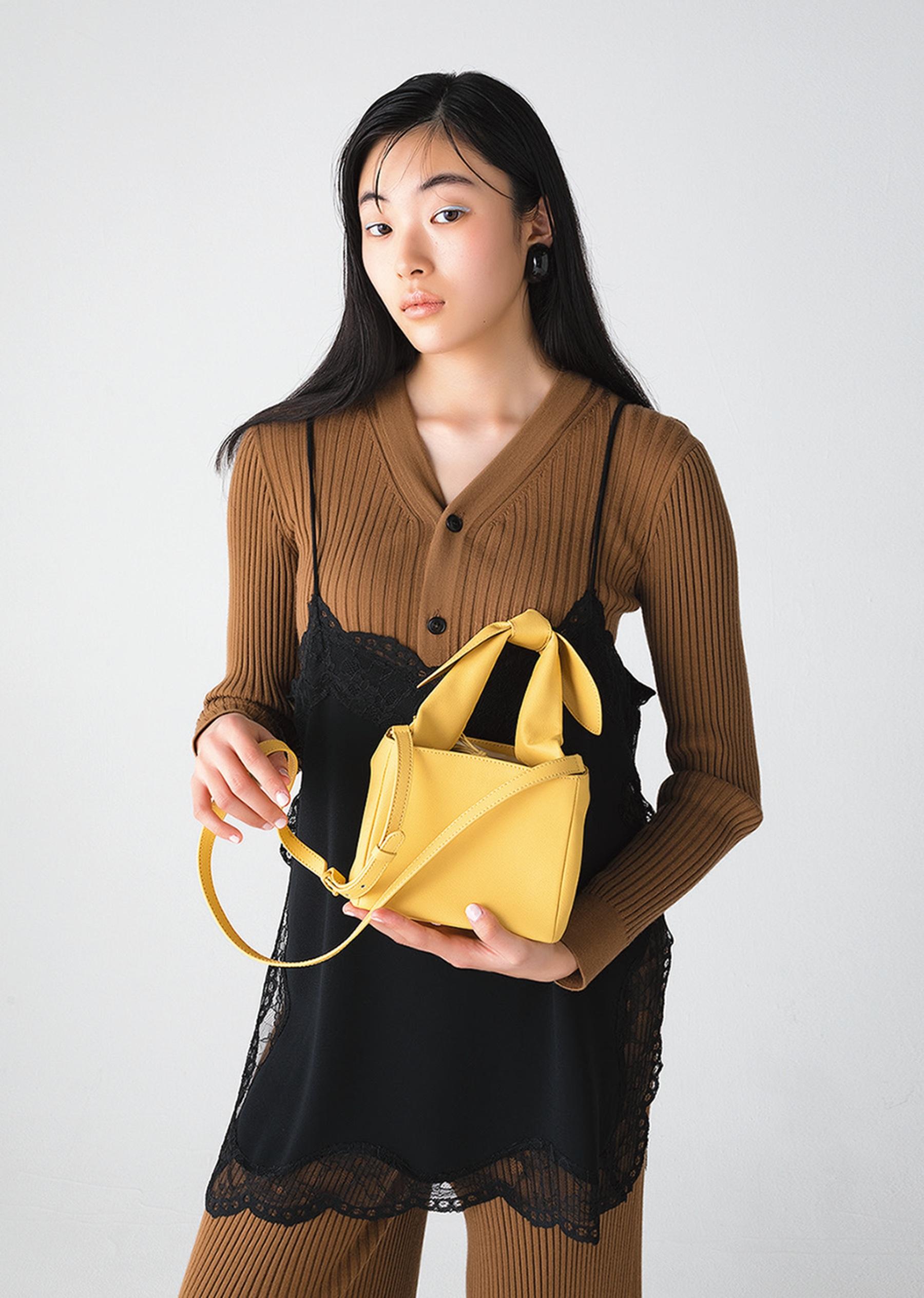 有機的なフォルムが印象的なブランドのシグネチャーバッグに、ひと回り小さいサイズが登場。ストラップをアジャストさせることで、手持ち、肩がけ、斜めがけもできる3WAYに。¥ 69,850(ノリ エノモト TEL. 03-4363-8569)