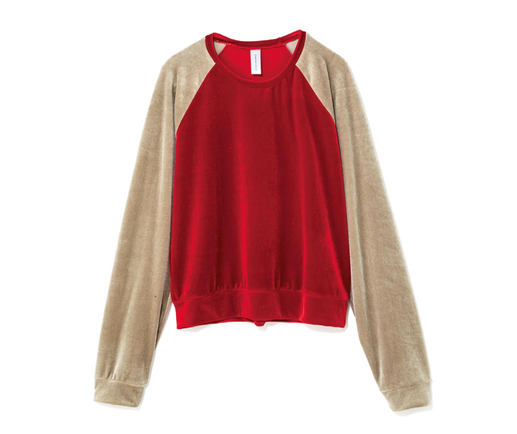柔らかな光沢や、鮮やかな赤とベージュのコントラストが利いたインパクト大のラグラン。カジュアルはもちろん、きれいめに仕上げたい時にも活躍。¥38,500(シモーネ ワイルド/フィルグショールーム TEL. 03-5357-8771)
