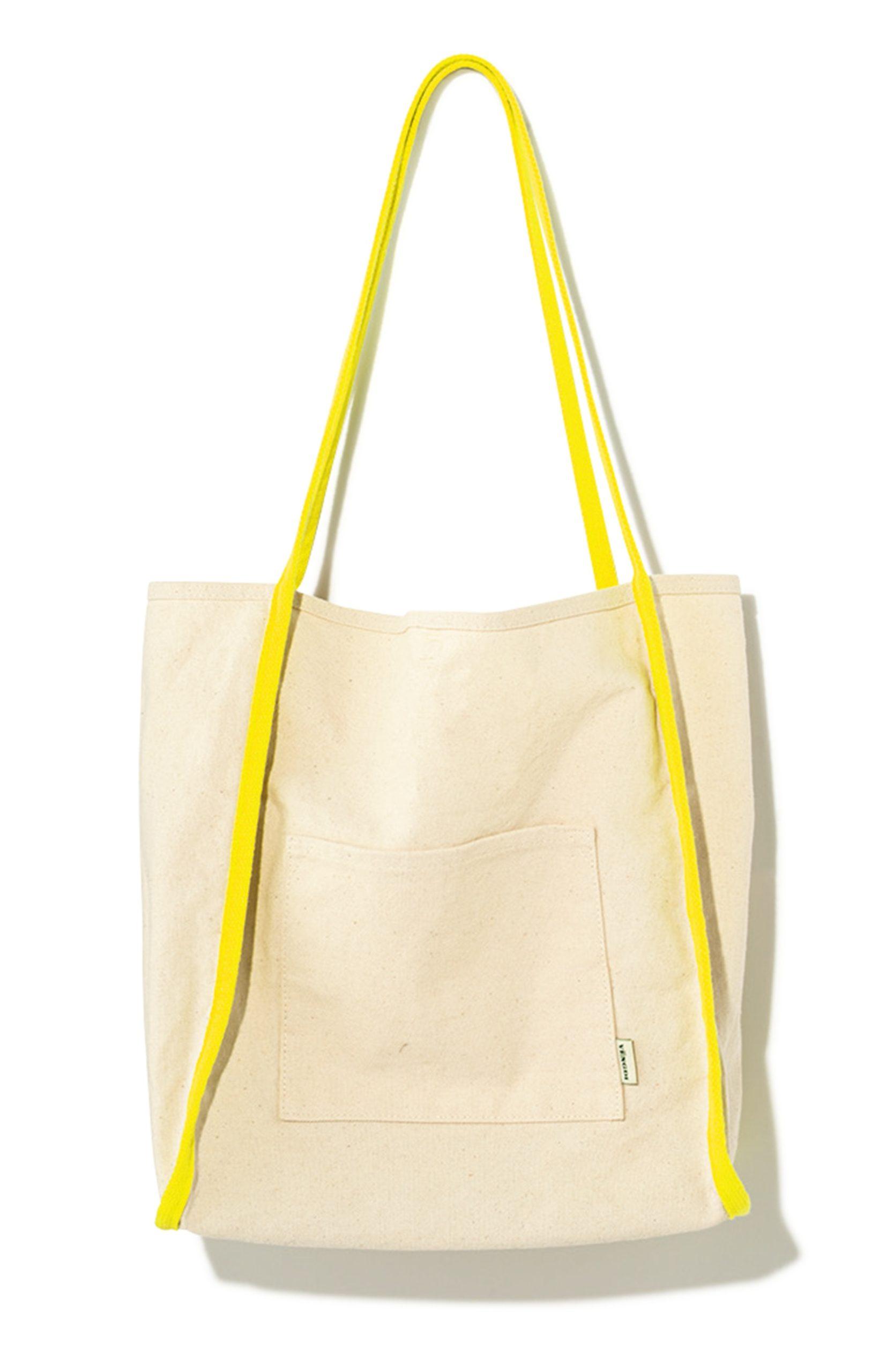 イエローの配色が印象的なコットンキャンバスバッグ。広めのマチで荷物もたっぷり入る。W30×H35×マチ14.5cm ¥7,920(ヴェンディ/ジャック・オブ・オール・トレーズ プレスルーム TEL. 03-3401-5001)