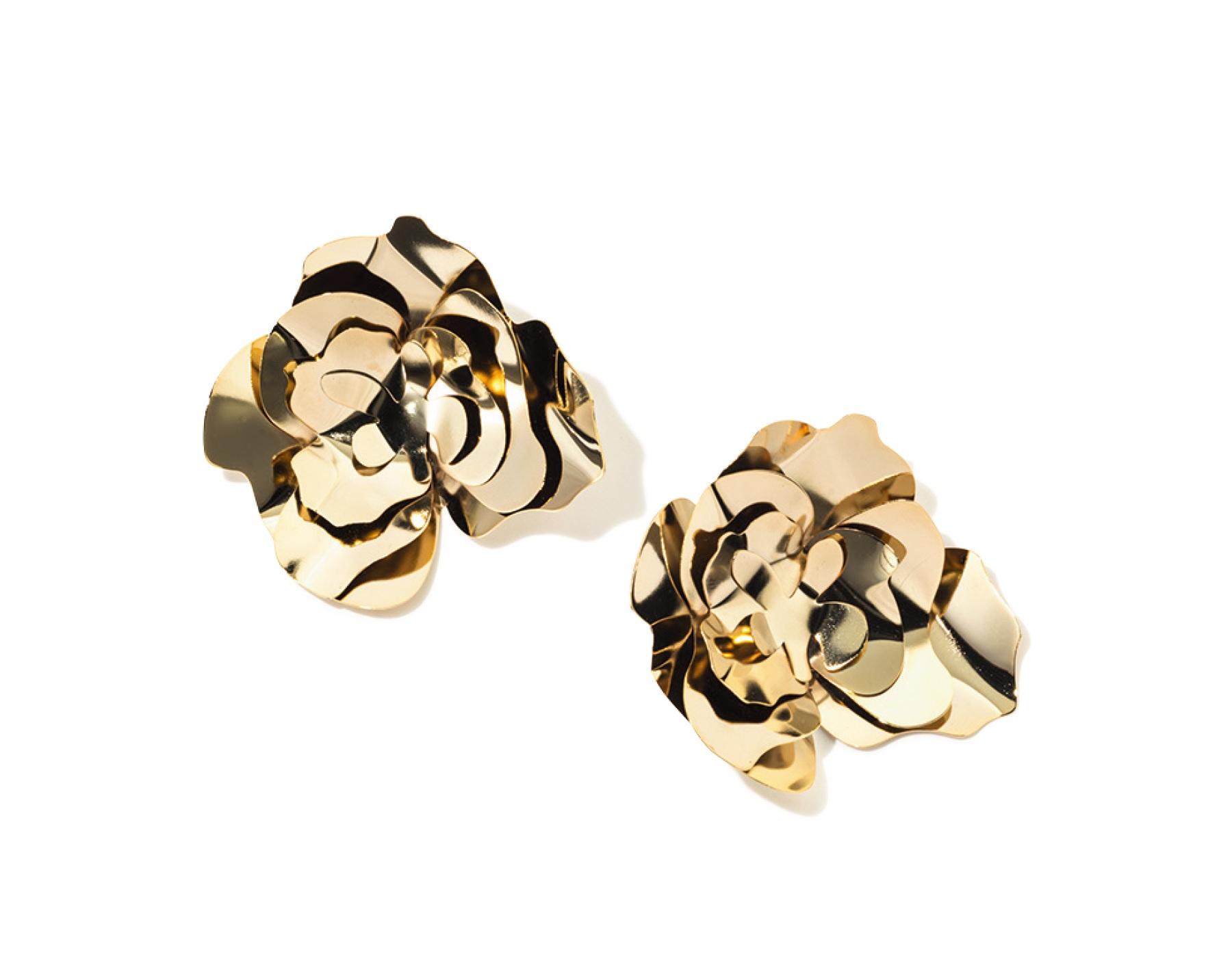緻密なデザインと優れた品質で知られるイタリア発の『LIVIANA CONTI』。花の形をした大ぶりのピアスは、ゴールドの輝きで顔まわりをグッと華やかに。 ¥47,300(リヴィアナコンティ/イザ TEL. 0120-135-015)