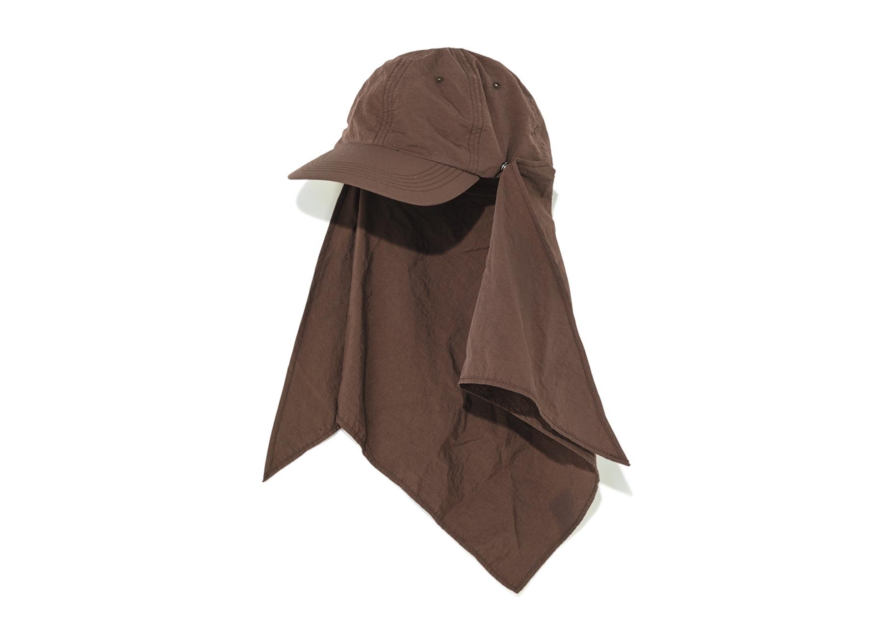 今年の新色はこっくりとしたブラウン。撥水性とUVカット機能を兼ね備えたナイロン素材で、首の日焼けも防げる三角巾は取り外し可能。折り畳めるので旅行のお供にも最適。 ¥16,500(PHEENY TEL. 03-6407-8503)