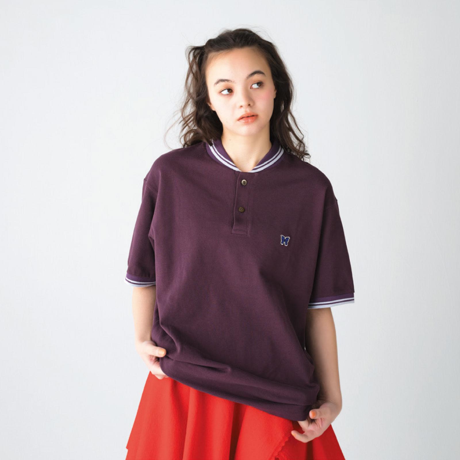 渋みのあるパープルのカラーと、『ニードルズ』らしいゆとりのあるシルエットが、端正なポロシャツに新鮮さをプラス。特徴的な襟のディテールが首元に視線を集める。 ¥16,500(ニードルズ/ネペンテス ウーマン トウキョウ TEL. 03-5962-7721)