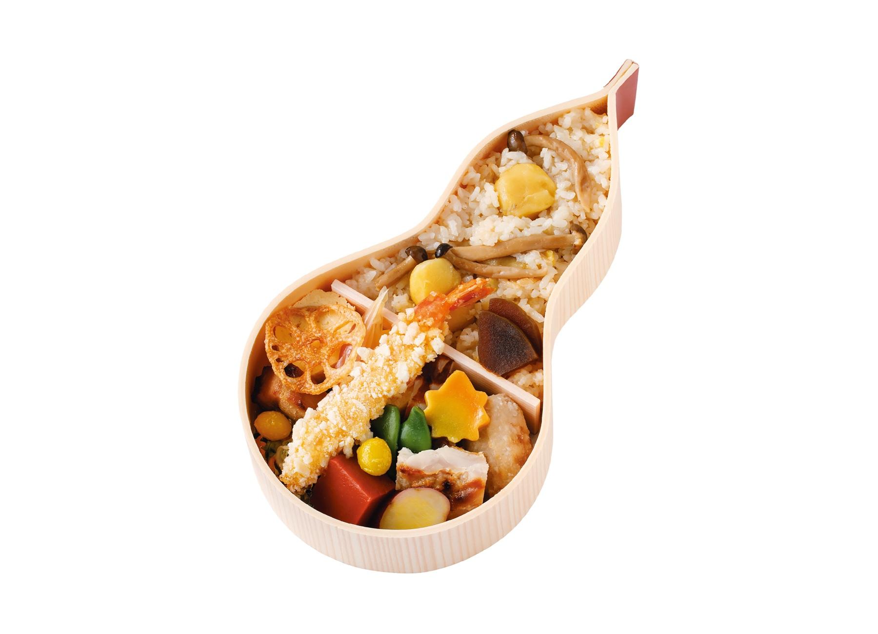 京都の茶懐石専門店が手がける、ひょうたん型のお弁当。栗ご飯に、海老おかきをはじめとする彩り豊かで手の込んだおかずたちを堪能。「ベテランの皆様や食通の方にもお喜びいただいている、間違いのない逸品です。季節ごとに味わいが変わる楽しみも」(編集M)