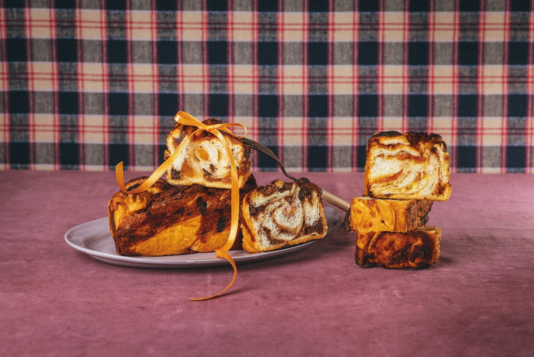 アップルシナモンバブカ。蜜漬けりんごのジューシーな甘みとチョコレート、シナモンの香りが味わい深く、この季節にぴったり。オリジナルバブカは、王道のチョコレートを贅沢に使用した元祖バブカ。濃厚なチョコレートペーストを惜しみなく塗り重ね、さらに砕いたチョコレートがたっぷりとちりばめられている。NYで愛されるエルビスサンドをイメージしたエルビスバブカは、濃厚なピーナッツバターにイチゴジャム、バナナ風味のブラウニー、香ばしくローストされたベーコンを練り込んだ、塩気も効いた一品。ほか、レモンバブカ、ジャバチップバブカ、抹茶あずきバブカあり。(すべて1本2500円)