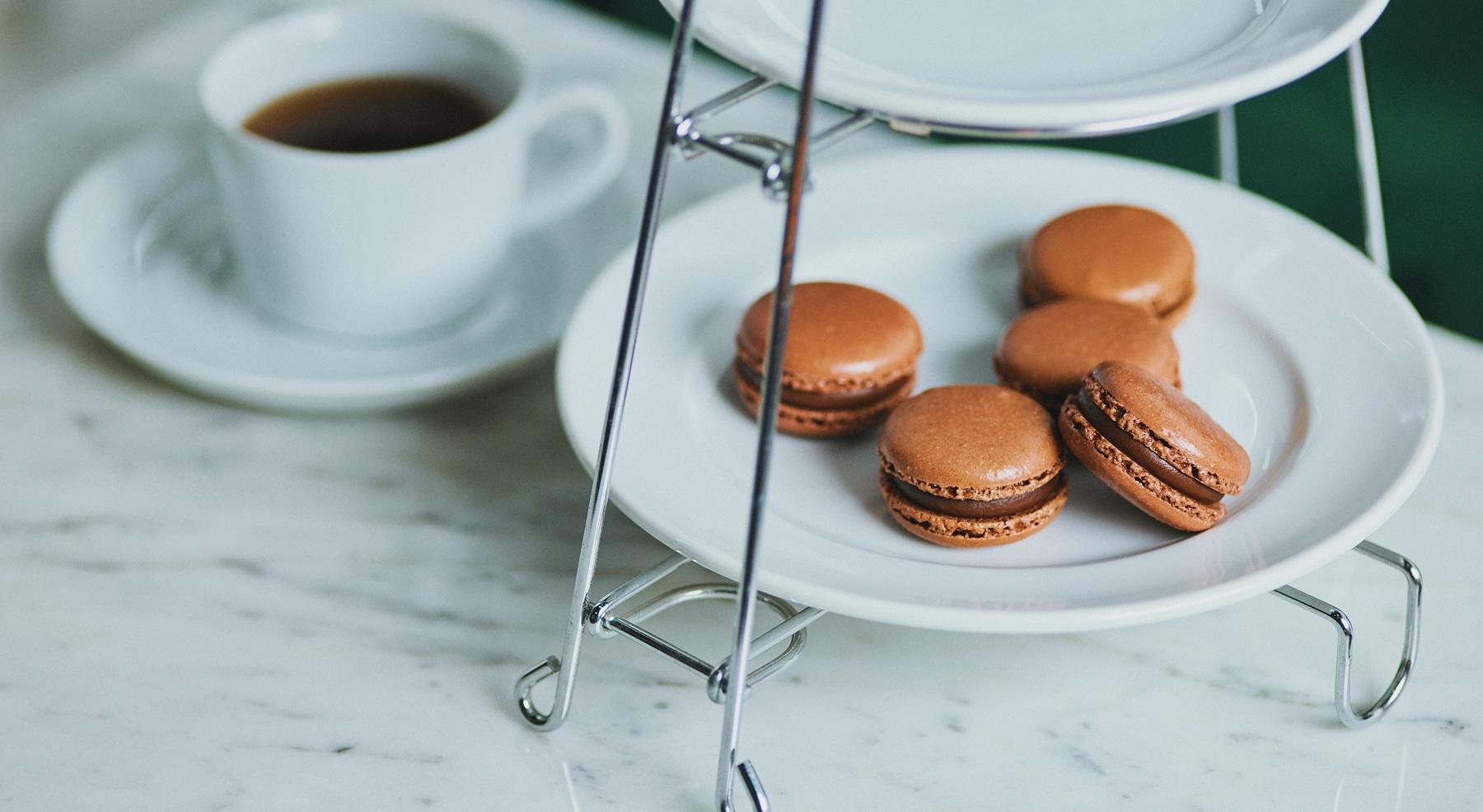 国内外の有名店で腕を磨いた佐藤浩一さんが、昨年8月にペストリーシェフに就任。初となるバレンタインの新作は、ベネズエラのチュアオ村でしか採れないカカオを使った贅沢なマカロン。ひと口かじれば、香り高いチョコレートのガナッシュとしっとりしたマカロン生地が溶け合う。カカオのほのかな酸味も感じるガナッシュは口溶け後にフレッシュな余韻を残し、「もう1個…」とつい手が伸びる一品。2月1日~3月31日限定販売。