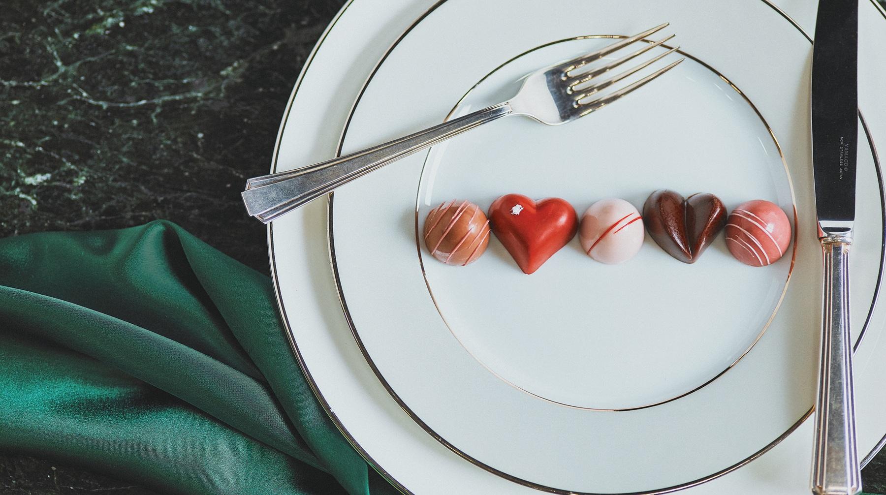 昨年夏に開業した高級ホテル、フェアモント東京からは、キュートなチョコレートボンボンが登場。ホワイトチョコレートにストロベリーピューレを合わせ、可憐なハートに仕上げた一粒や、クレープ生地を混ぜたアーモンドプラリネを入れたものなど、クラシカルなフランス菓子の伝統の中にモダンさを感じる仕上がりは“さすが”の一言。2月1日~14日限定販売。予約は2月13日まで。