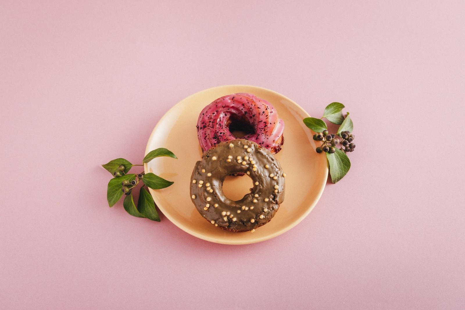 オーガニックや地産地消を取り入れる人気ドーナツ店。「SDGsに取り組んでいる店とは知らずに、味と見た目が好きで買っている人がいるかも。でも、そうやって自然に溶け込んでいくのは理想的な形」。手前から、京ほうじ茶チョコレート、赤紫蘇 各¥360 京都府京都市中京区新京極通四条上ル中之町557 8:00~20:00 不定休 https://donuts.koe.com/ オンラインで販売する商品も。
