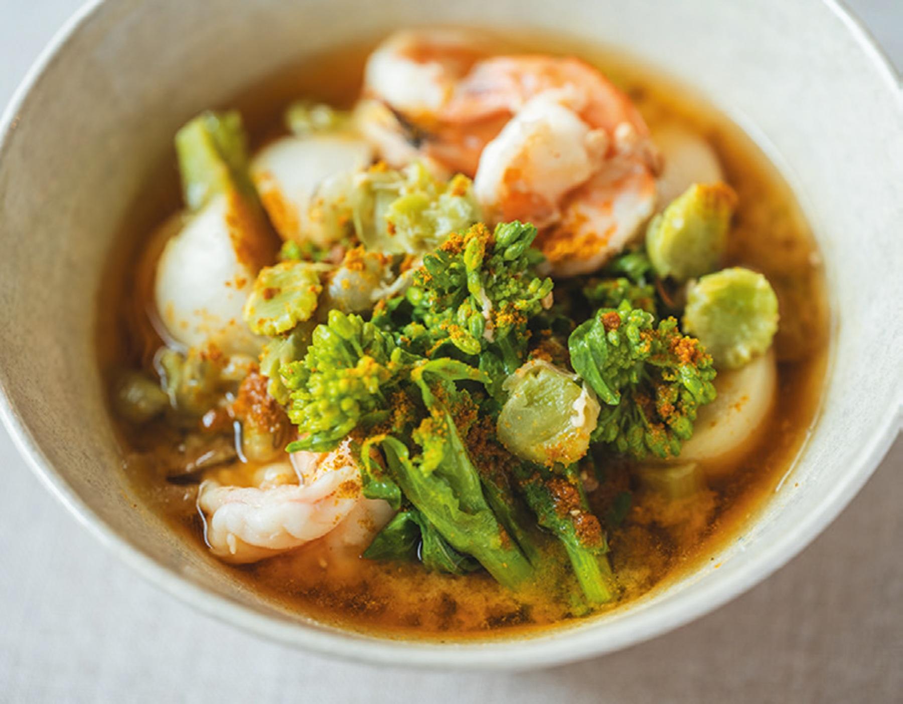 「カブは消化を助ける働きがあり、お腹から温めてくれます。エビは薬膳では『温性』の食材とされ、腎臓の働きを良くして体の芯から温める力が。菜花は花が咲く前の栄養をたっぷり蓄えたつぼみで、独特の苦味成分にはデトックス効果があり、新陳代謝を促してくれます」