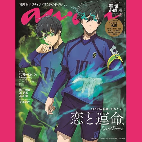 表紙を飾るのは、まるで星から舞い降りたような眩さのKing & Princeのお二人。アニメ『ブルーロック』の潔世一と糸師凛のスペシャルエディション表紙も同時発売です。(YN)