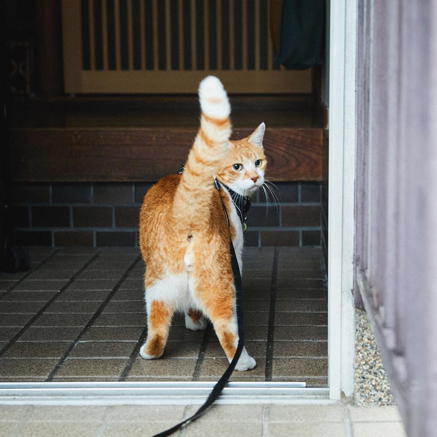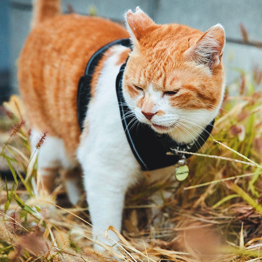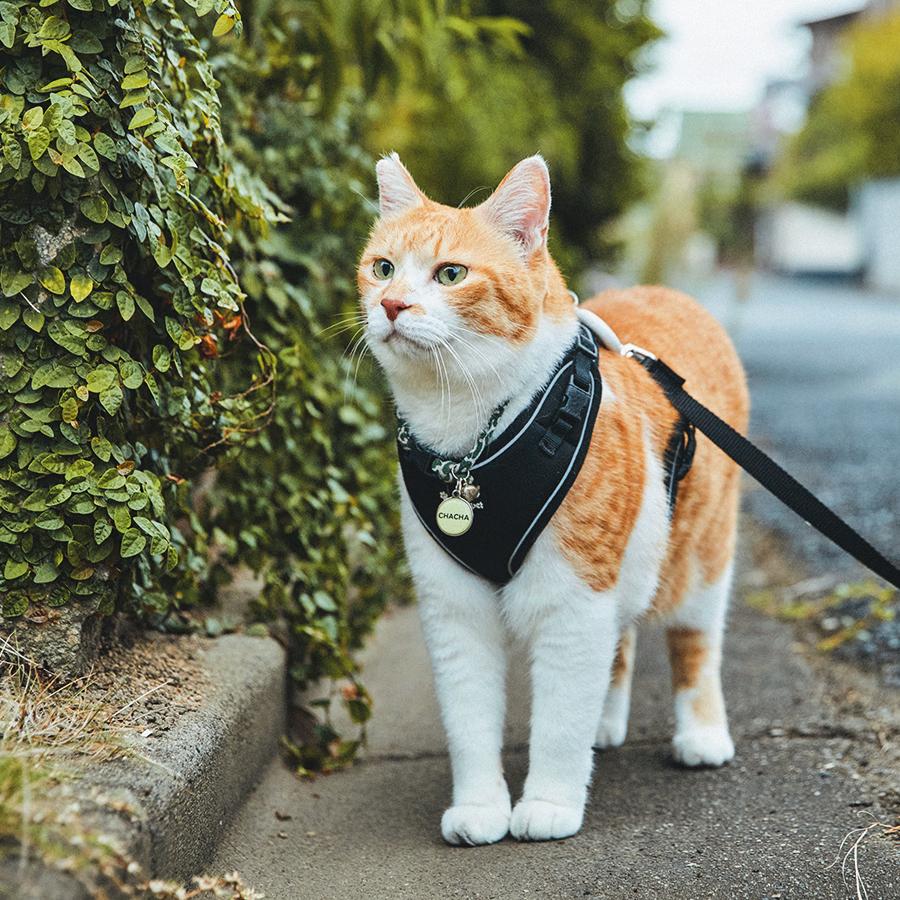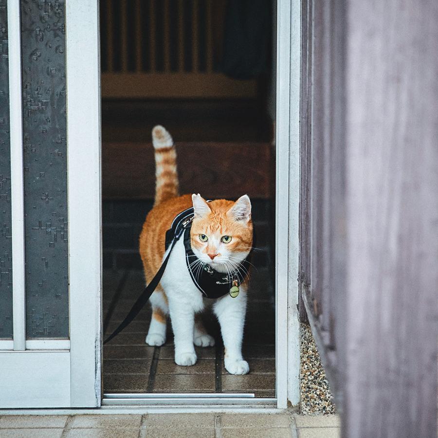 家の中では大好きなかーさん(飼い主)に甘えたり、お気に入りの場所で昼寝したり、ニャルソックをしたり…、のんびりと家猫ライフを満喫中のチャチャさん。でも、朝晩の日課の散歩の時間になると、表情が一変。玄関でハーネスを装着するや否や、キリリと侍のような顔つきに。そして、扉を開けていざ出陣! そのルーティンと〝城下〞(町内)を散歩する様子が大人気となり、YouTubeの登録者数は54万人以上。「4年前に、地域猫として気ままに暮らしていたチャチャをうちの子として迎える時、チャチャに約束したんです。外で過ごす自由を奪ってしまったけれど、これからの猫生も、できるだけストレスなく、幸せに過ごせるようにすると」