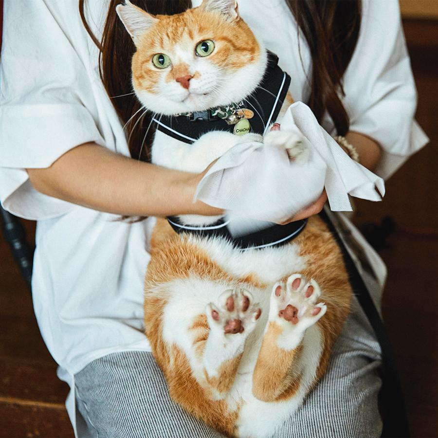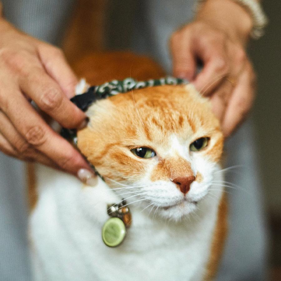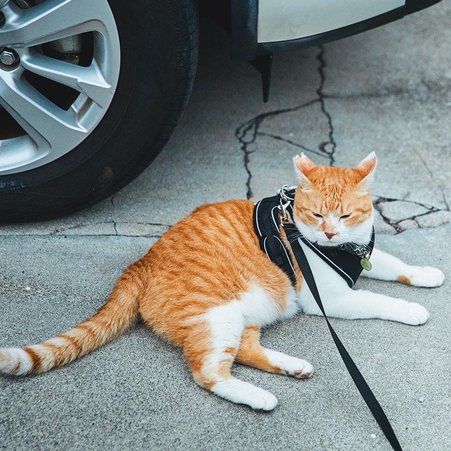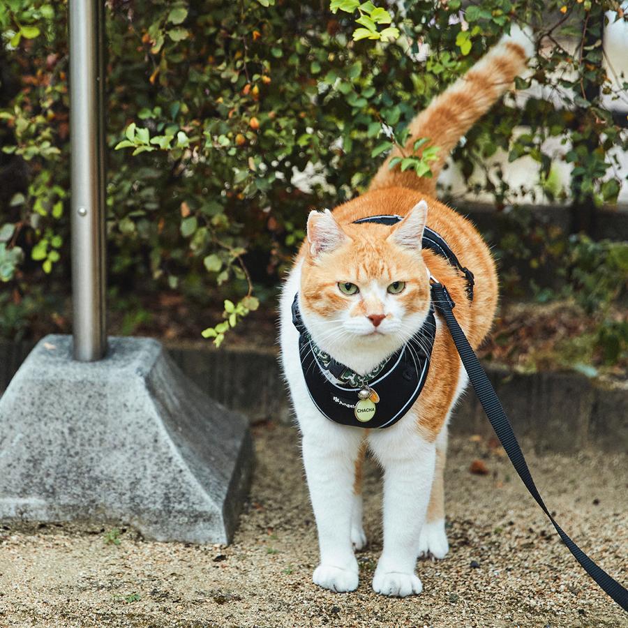 家の中では大好きなかーさん(飼い主)に甘えたり、お気に入りの場所で昼寝したり、ニャルソックをしたり…、のんびりと家猫ライフを満喫中のチャチャさん。でも、朝晩の日課の散歩の時間になると、表情が一変。玄関でハーネスを装着するや否や、キリリと侍のような顔つきに。そして、扉を開けていざ出陣! そのルーティンと〝城下〞(町内)を散歩する様子が大人気となり、YouTubeの登録者数は54万人以上。「4年前に、地域猫として気ままに暮らしていたチャチャをうちの子として迎える時、チャチャに約束したんです。外で過ごす自由を奪ってしまったけれど、これからの猫生も、できるだけストレスなく、幸せに過ごせるようにすると」