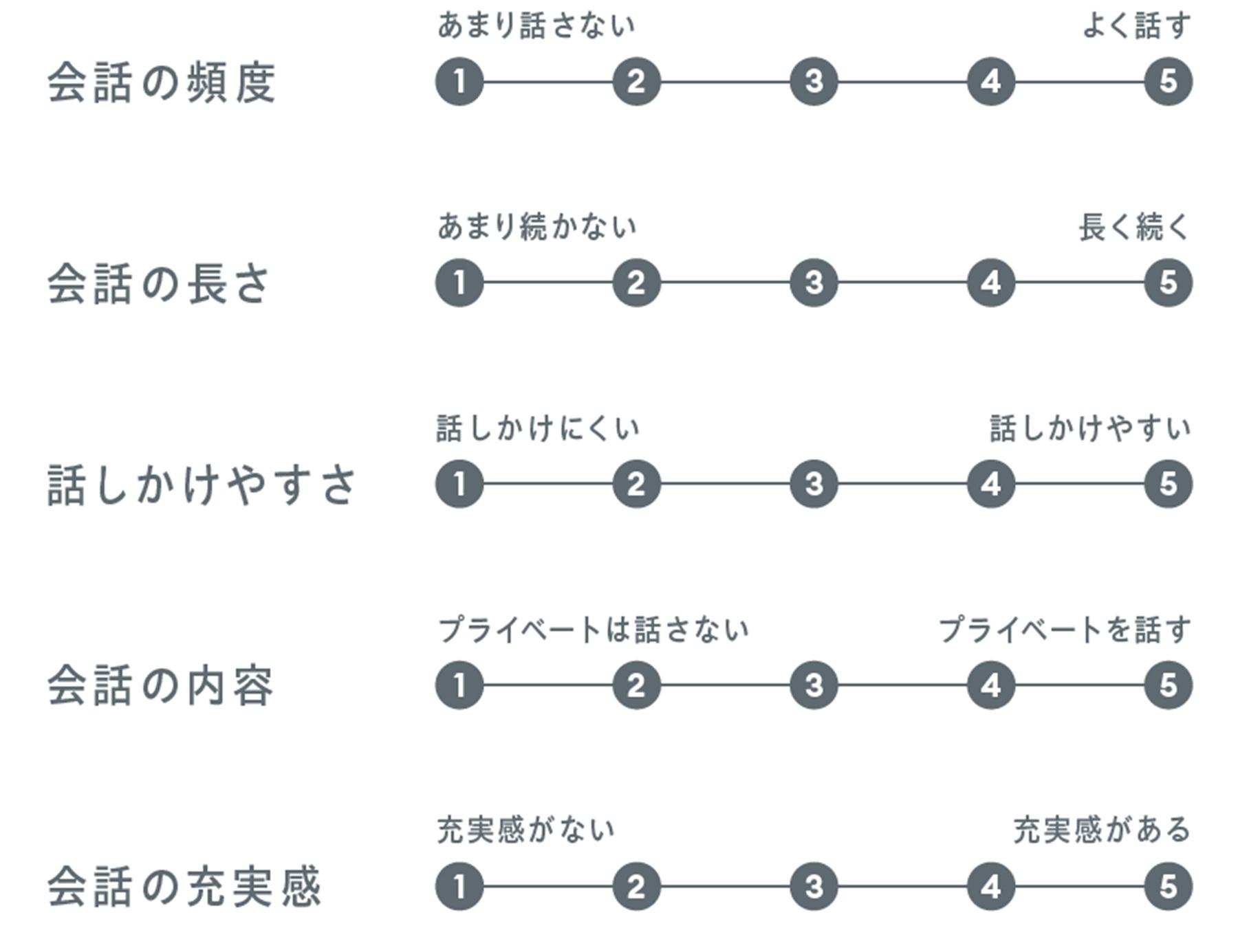 あまり話さない‐1‐2‐3‐4‐5‐よく話す