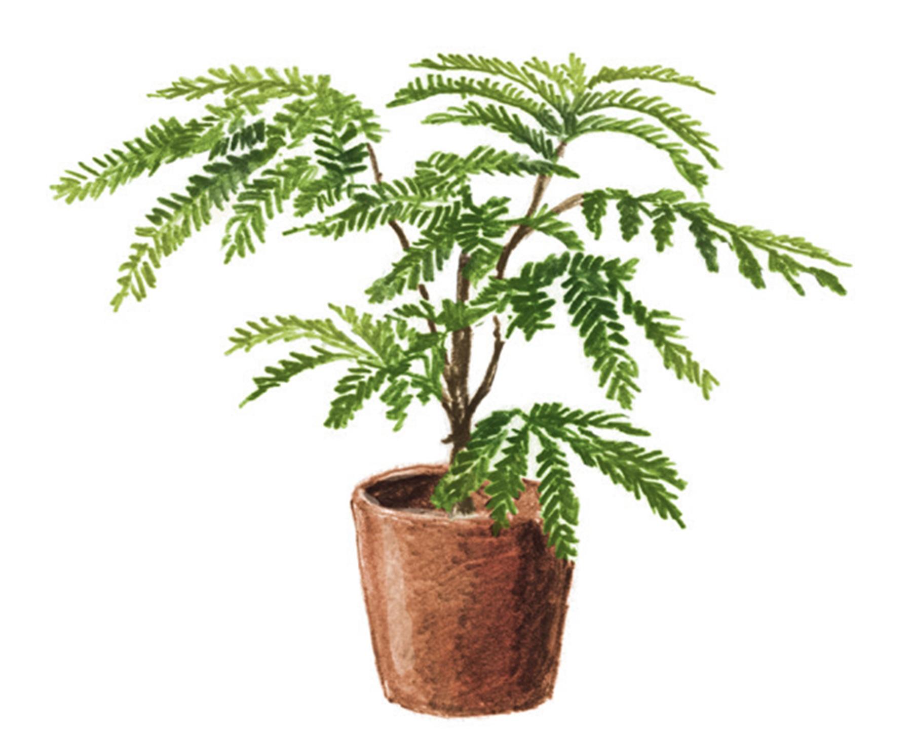 日当たりが良い場所で、すくすく育つエバーフレッシュとウンベラータ、アルテシマ、ベンガレンシスなどのフィカス系がおすすめ。「生命力の強いフィカス系。水やりは環境や季節により頻度を変えて。エバーフレッシュは細かい葉が密生しており、お手入れしないとパラパラと落ちてくるので、定期的な葉水も忘れずに」