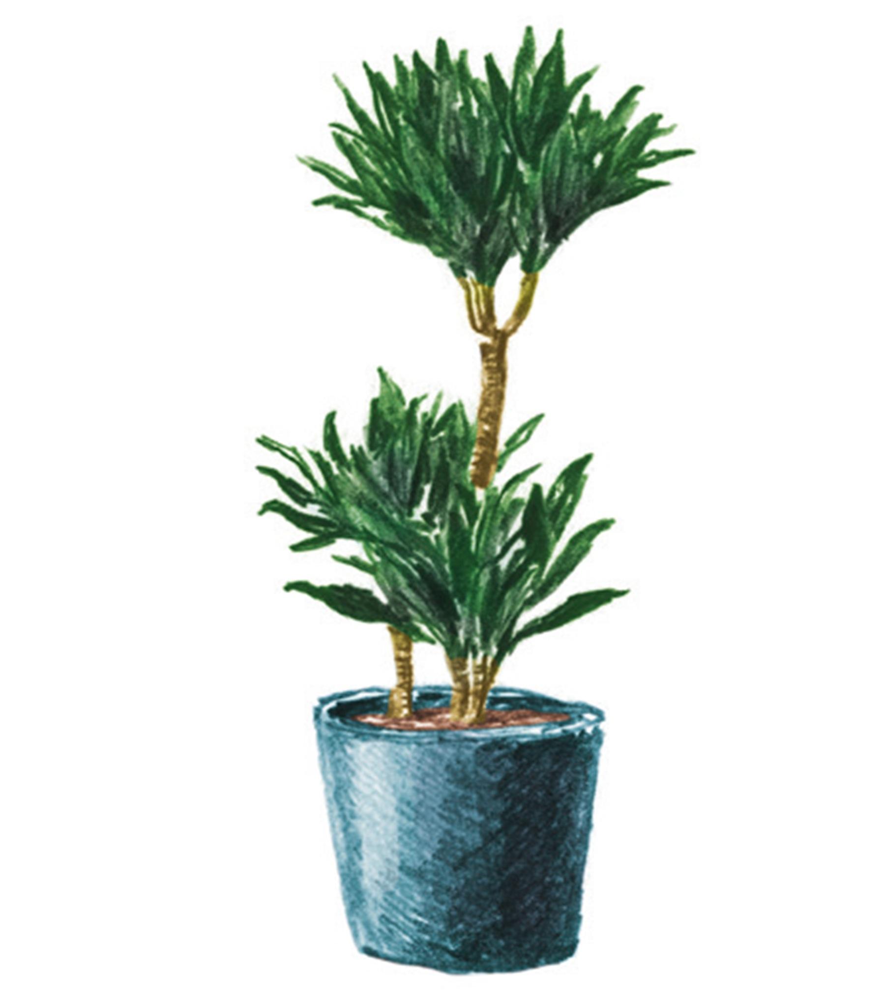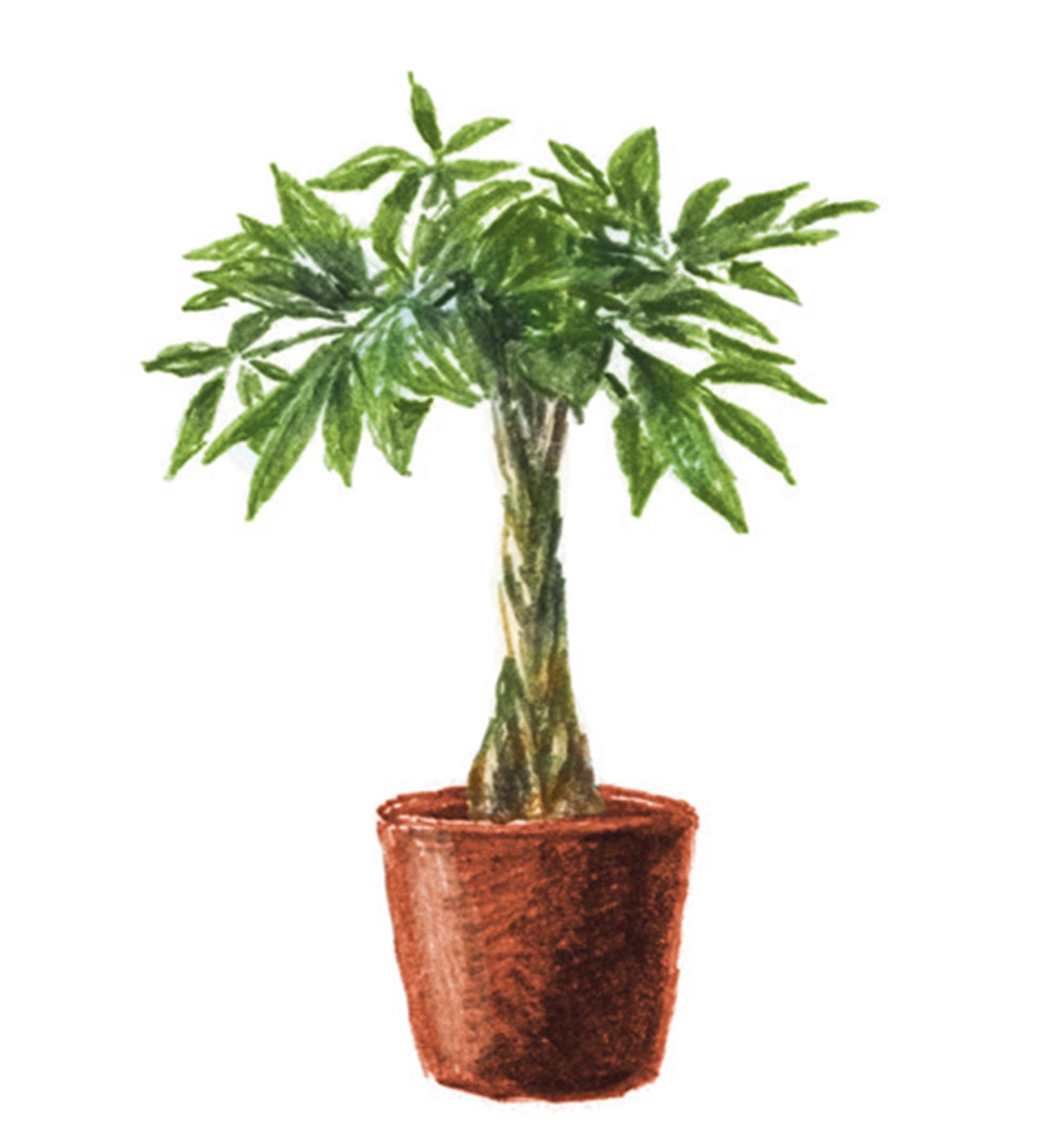 「植物にエアコンの風が直接当たってしまうと、過度に乾燥して葉が傷み、枯れてしまう場合が。だからできるだけ直撃させないように置くべきですが、置き場所を選べないなら、葉が厚くて硬めなパキラなら比較的強風にも耐えられるでしょう。ただし葉水はこまめに行うこと」。エレファンティペスなどのユッカ系も風に強い。