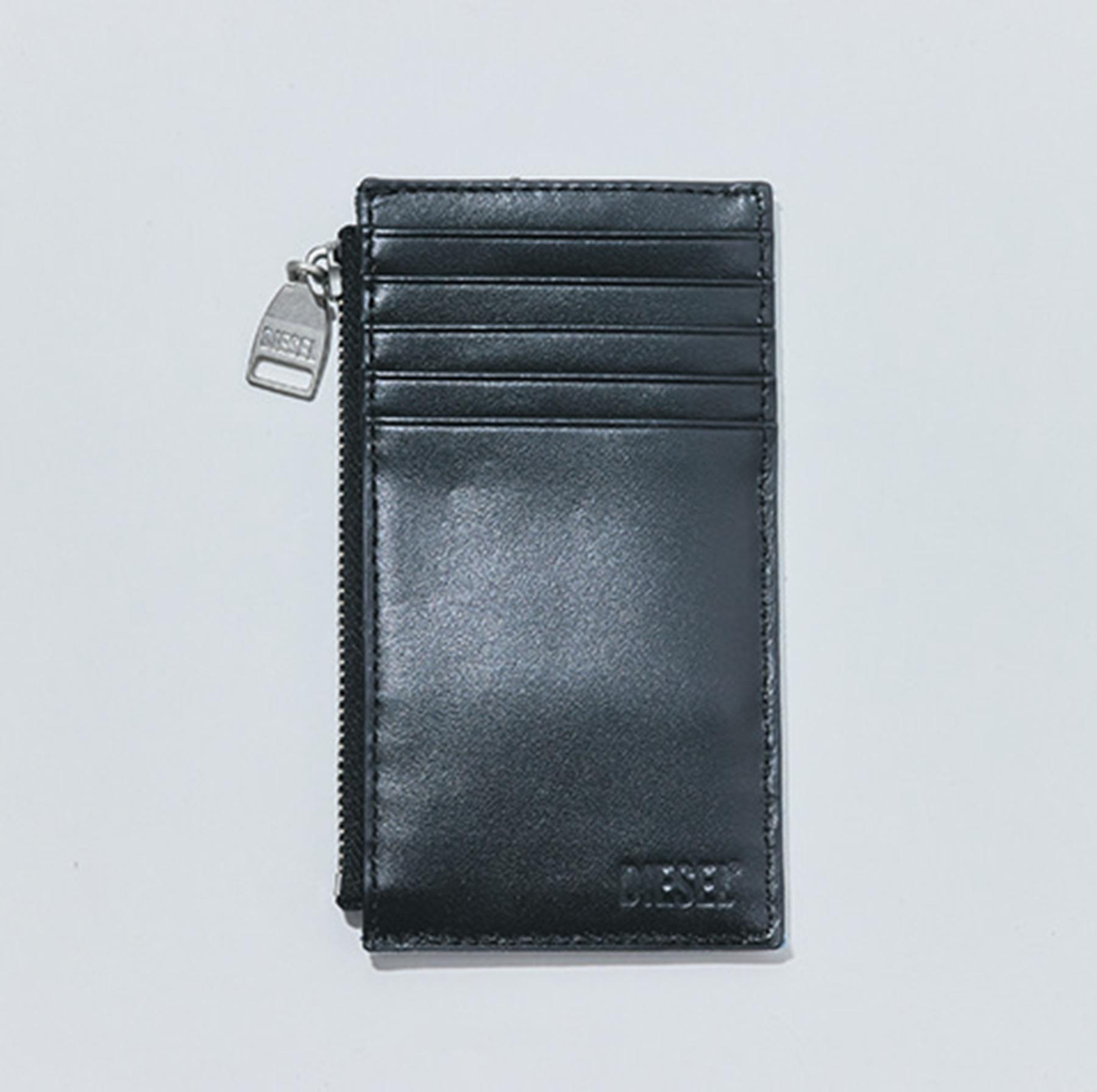 5段のカードスロットにファスナーポケットのみのミニマルな仕様。機能的にはシンプルながら、ブランドロゴをかたどったメタルパーツをデニム地にあしらったデザインは見た目のインパクト大。W13×H7cm¥27,500(ディーゼル/ディーゼル ジャパン TEL:0120・55・1978)