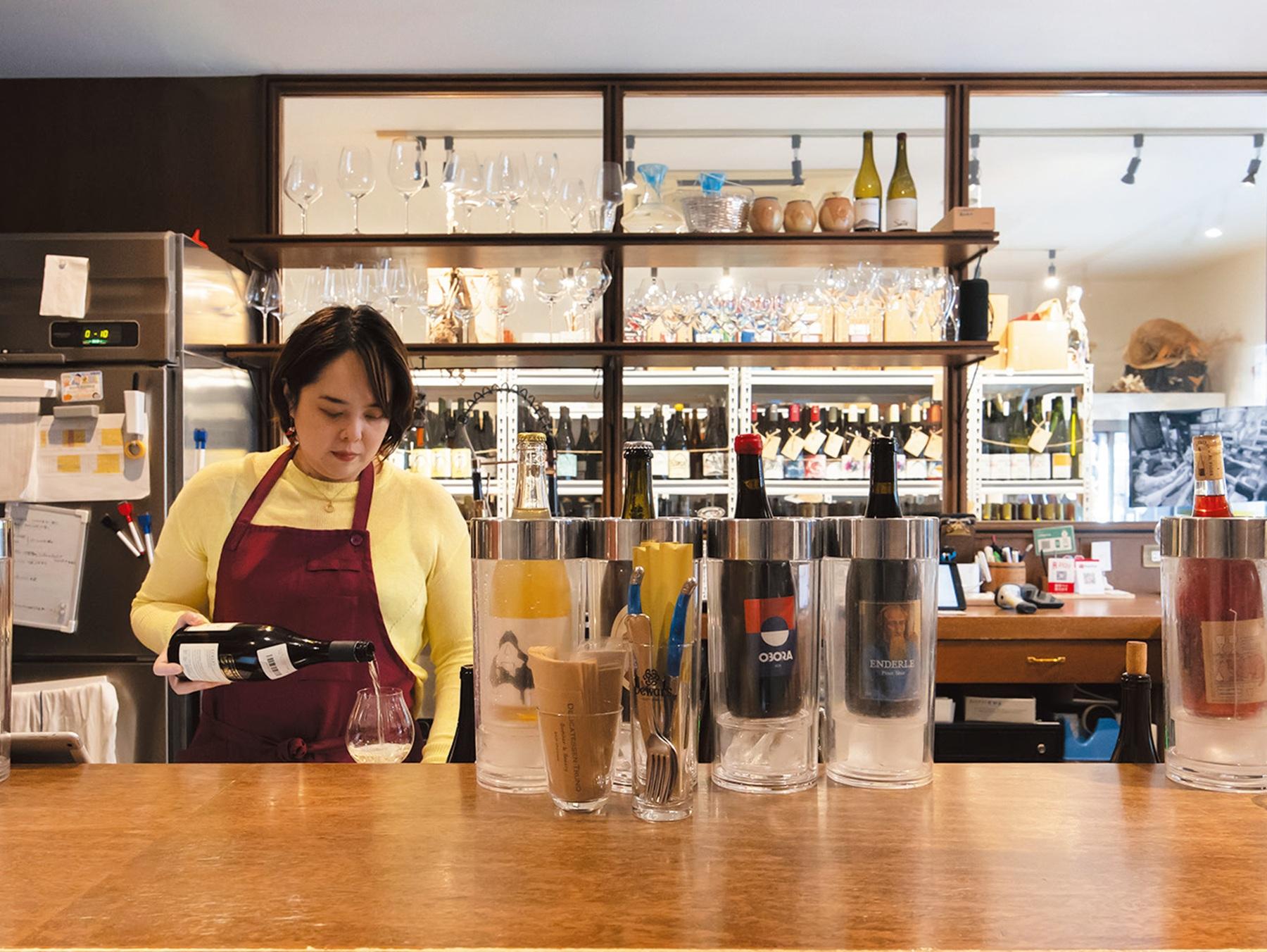 「今日は1軒目ですか? などのやり取りを通して、お客様の好みを伺いおすすめのワインを提案します」(竹内さん)。