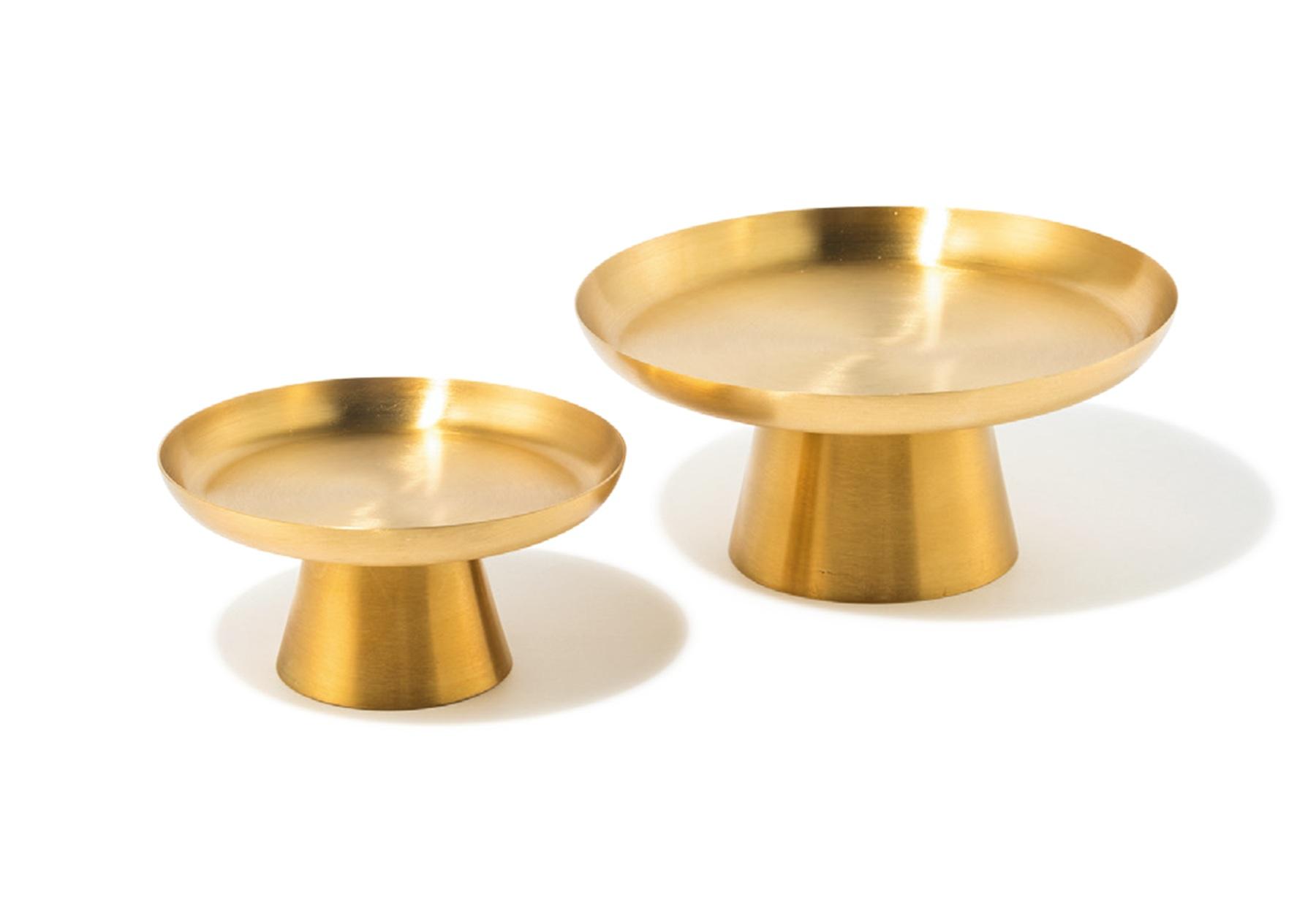 真鍮製の美しいケーキスタンド。季節のフルーツや焼き菓子を載せるだけで、いつもとひと味違う特別感を演出してくれる。インテリアに馴染みやすい、少しくすんだ色合いも絶妙。