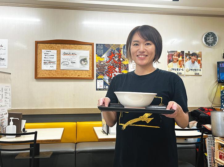 つねかわ・ももこ グレースケアで訪問介護に携わって6年目。中3、中2、3歳の子どもを育てながら、夫が経営するラーメン店『ちくせん』の手伝いもこなす。