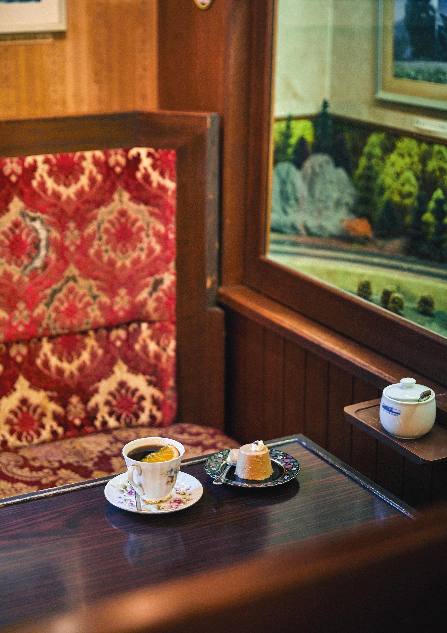 かつて日本各地を走っていたブルートレインを愛する店主の中村正陽さんが、1980年に開業した喫茶店。昭和レトロの面影を色濃く残す空間には、昔の寝台列車のボックス席を思わせるテーブルと赤いベルベットのシートが。ガラスケースに並ぶ鉄道模型や、店内に配されたレールの上を軽快に走る列車は中村さんの自作。昔ながらの大きなウォータードリップサーバーで淹れたコーヒーも、まろやかな味わいで心が和む。