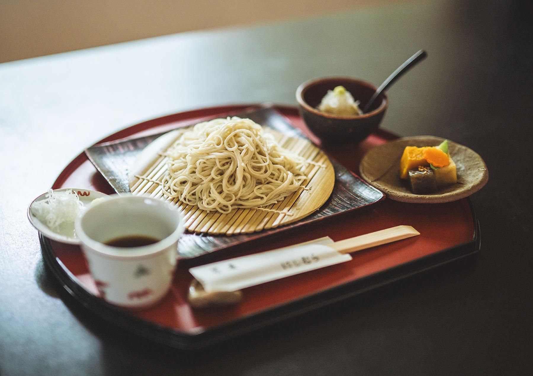 良質なそばは昼夜の寒暖差が大きい標高の高い場所で育つため、昔から諏訪エリアはそばの栽培が盛ん。『蕎麦 にしむら』では、同じ町の標高1100mの高地で栽培した蕎麦粉を使用。毎年9~11月に収穫し、殻つきのそばの実・玄そばの状態で保管する。その日に使う分だけを敷地内の製粉所で石臼挽きして打つため、風味が抜群。細切りのそば特有の歯切れの良さと喉ごしが楽しめ、かつお出汁が香るそば汁とも好相性。「そば定食」につくデザートは、店主の娘さんが営む菓子工房『ル・キャトル・セゾン』のケーキも選べる。