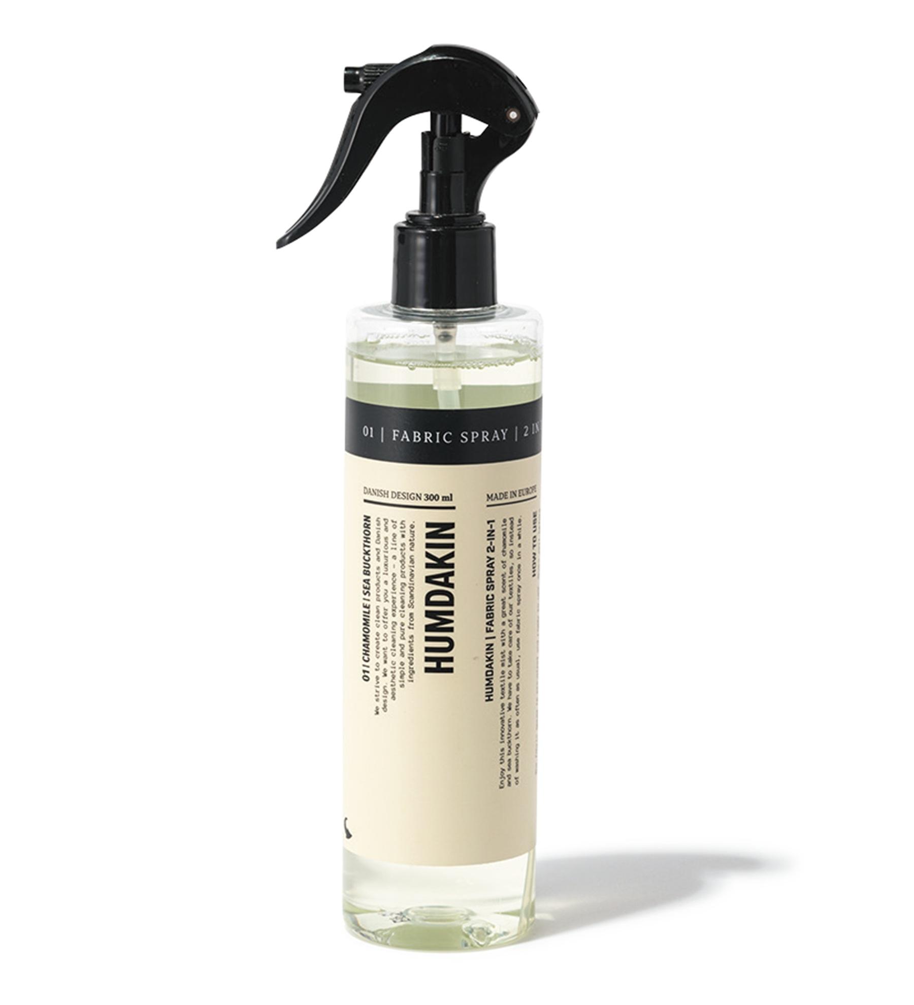 カモミールやシーバックソーンなど、低刺激の天然抽出物を配合したファブリックスプレー。カーテンなど、頻繁には洗濯できない布製品のケアにも。300ml ¥6,050(ハムダキン/アクタスオンライン)