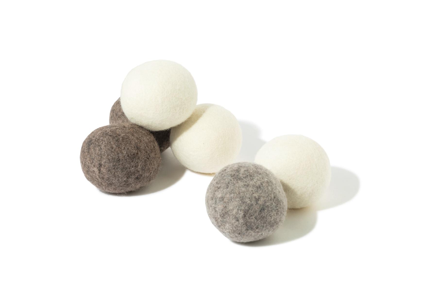 洗濯物と一緒に乾燥機に入れるだけで、衣類がふんわりとした仕上がりに。ボールが水分を吸収するため、乾燥時間も短縮できる。タンブルドライヤーボール6個(バッグ付き)¥2,310(mana. ORGANIC LIVING)