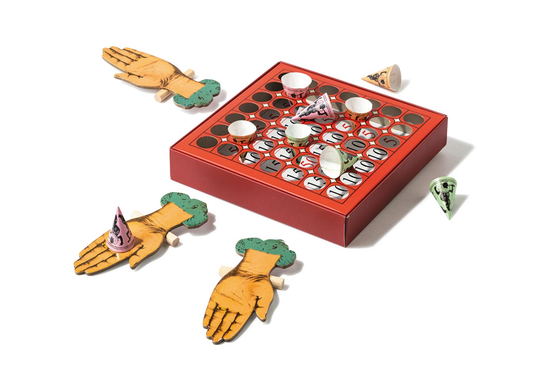 木でできた手のひらから、カラーコーンを紙ネットにたたいて飛ばし、合計ポイントを競うボードゲーム。電子音や液晶のない古き良きスタイルで、なかなか寝つけない夜にもぴったり。HOPLA¥1,430(ダルトン)